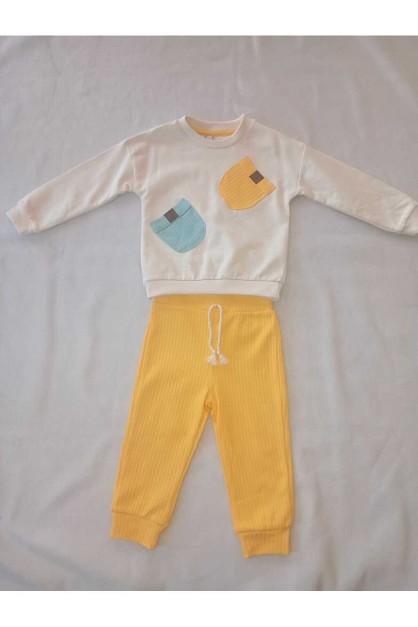 Bebeklerin rahatlığı düşünülerek tasarlanmış, tüm yaş gruplarına uygun oversize kalıpta ve regular boyda bir eşofman takımı;; Pratik kullanım için tasarlanmış 2 cepli üst ve alt parçalar, bebeğinizin eşyalarını yanınızda taşımasını kolaylaştırır;; Dokuma kumaş yapısı sayesinde dayanıklılık ve konforu bir arada sunar, hareket özgürlüğünü kısıtlamaz;; Canlı ve eğlenceli desenleriyle bebeğinizin enerjisini yansıtan bu takım, günlük giyimde şıklığı ve rahatlığı birleştirir;;