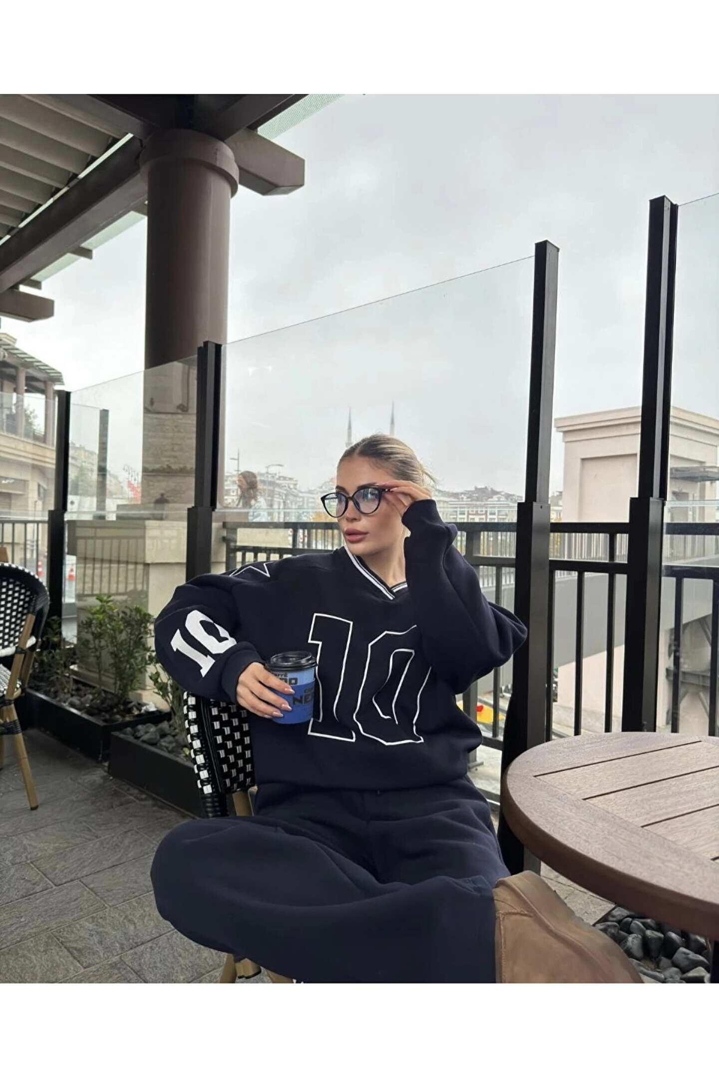 V Yaka Üç İplik Sweat Takım - Siyah