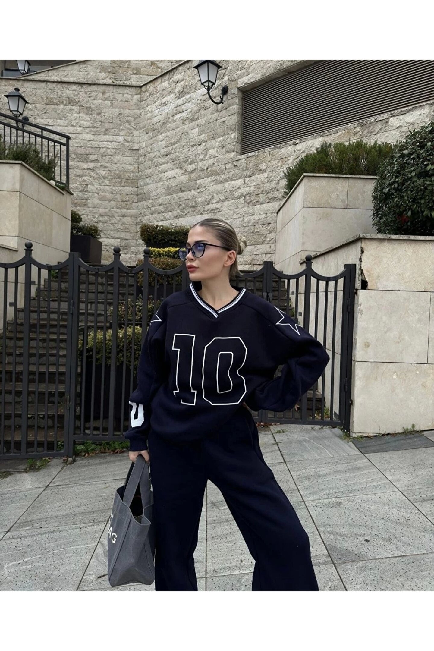 MÇ Plus V Yaka Üç İplik Sweat Takım - Siyah