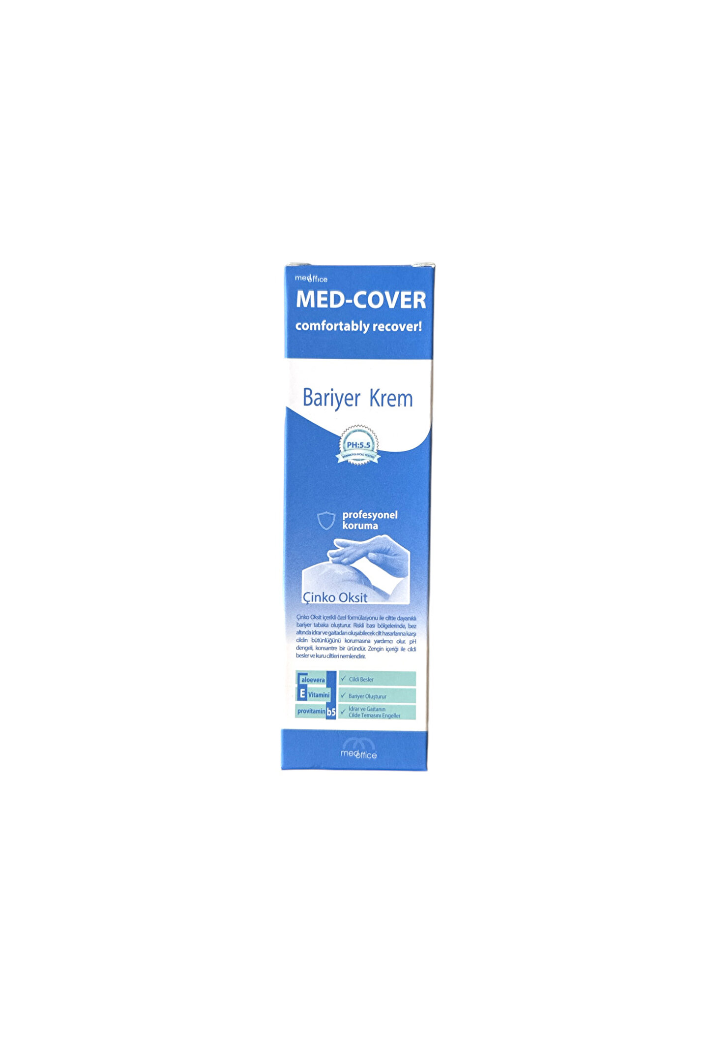 Med-cover Bariyer Krem 100 Gr - Koruyucu Bariyer Krem ; Yatan hastalarda, hasta alt bezi kullanan hastalarda bası noktalarında oluşabilecek tahriş ve kızarıklıkları koruma amaçlı kullanılmaktadır.; Ciltte inkontinans kaynaklı dermatit oluşumunu önler.; Yatan hastalarda pozisyon verirken oluşabilecek tahrişleri önlemeye yardımcı olur.; Tüm yara kenarında oluşabilecek maserasyonları engeller, bu sayede yaranın büyümesini engeller, yara iyileşmesine katkıda bulunur.; Cildi nemlendirir.; Flaster ve yara örtüsünün yapışmasını engellemez.; Flasterin rahatça vücuttan ayrılmasına olanak sağlar.; Vücut sıvılarına karşı dayanıklıdır.; Yoğun krem formundadır.; ; MED-COVER BARİYER KREM KULLANIMI VE UYGULAMA ŞEKLİ 1. Önceli kle sürülecek olan cildin temiz ve kuru olmasına dikkat edilmelidir.; 2. İnce bir tabakaşeklinde günde 2 defa uygulanmalıdır.; 3. Uygulanan bölgelerde 24 saatte bir mutlaka sürülen krem ciltten kalıntı bırakmayacak şekilde temizlenmeli ve yeni uygulamaya temizlendikten sonra geçilmelidir.; 4. İdrar kaçağı ve Gaita kaçağı olan İntkontinas bölgesinde günde 3 defa ya kadar kullanıma uygundur.; 5. Cilt üzerinde uygulandığında idrar ve tere karşı bariyer oluşturmaktadır.; 6. Devamlı yatan hastalarda özellikle bası noktalarında (Ayak topuğu, Kuyruk Sokumu, Sırt Omuz, Kalça ve Dirseklerde) Bariyer bir film oluşturarak sürtünmelere karşı Bası noktalarını koruyarak yara oluşumunu engellemektedir.; 7. Yatan hastalarda düzenli kullanım sonunda yara oluşumunu engellediği gibi cildi nemlendirir ve beslemektedir.