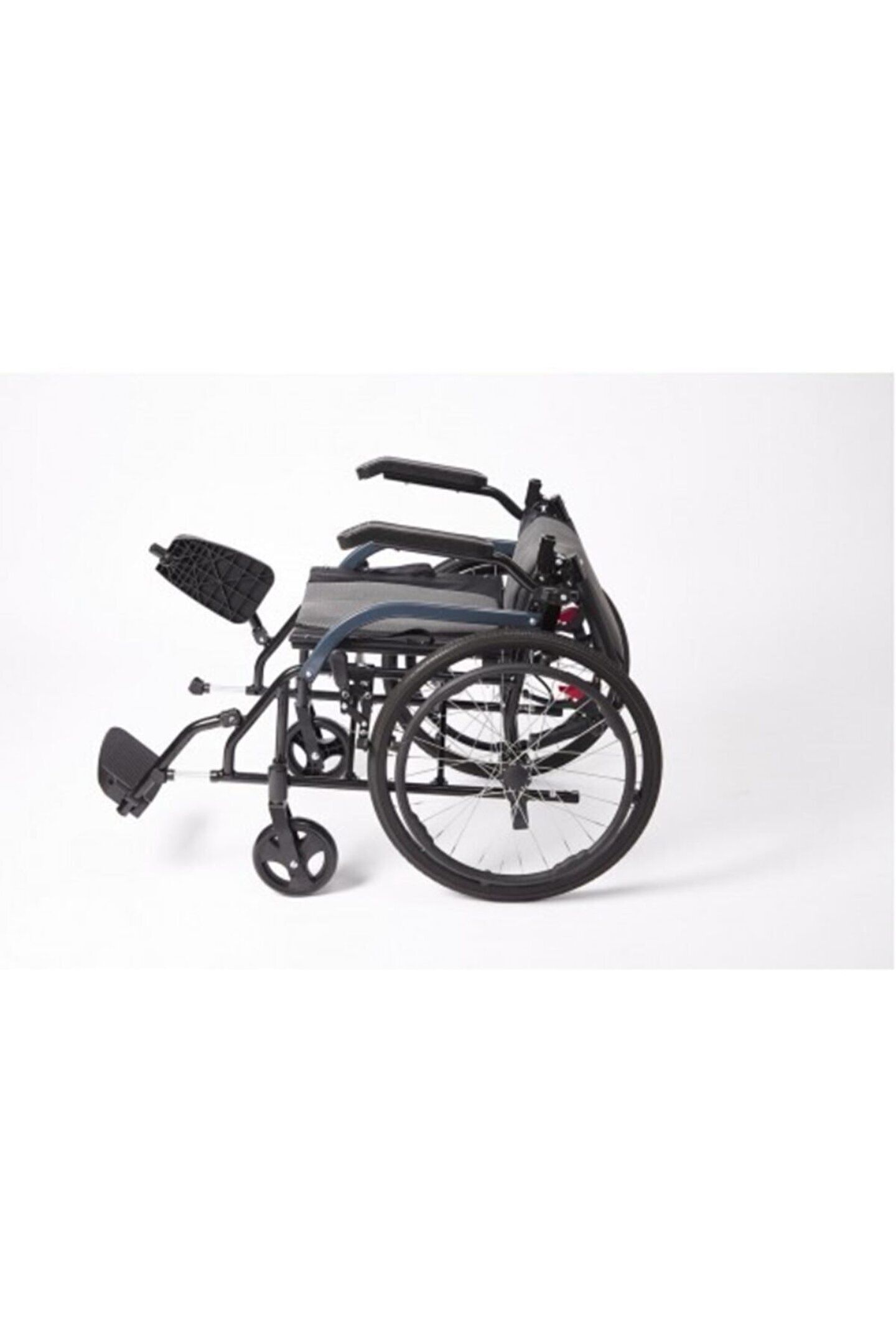 Ürün Özellikleri:; Katlanabilir Boyalı Çelik kasa; Çıkabilen Kolçaklar; Ayak Kalkar Ayaklıklar; Silikon Dolgu On ve Arka tekerler; 46 cm Oturma Genişliği Ürün Ağırlığı : 19 kg Taşıma Kapasitesi: 120 kg;