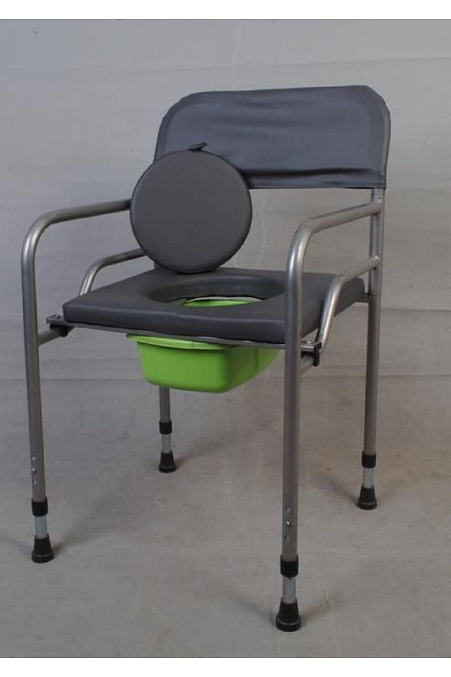 Ayaklı Seyyar Lazımlık Hasta Tuvalet Sandalyesi Derili Yumuşak Derili Hasta Klozet Sandalyesi Açıklama Diğer modellerden daha rahat ve daha stabildir. Katlanma özelliği sayesinde ev içerisinde az yer kaplar ve taşıma kolaylığı sağlar. • Tamamen metal borudan imal edilmiştir. • Dengeli ve sağlam bir oturaktır. • Oturak kısmı puflu olup rahat bir kullanım sağlar. • Alt kısmındaki plastik sürgü istenildiği zaman çıkarılıp temizlenebilir. • Eklemli bağlantıları sayesinde katlanır özelliğine sahiptir yer kaplamaz. • Yüksekliği ayalanabilir. • Tamamen elektrostatik toz boyadır.