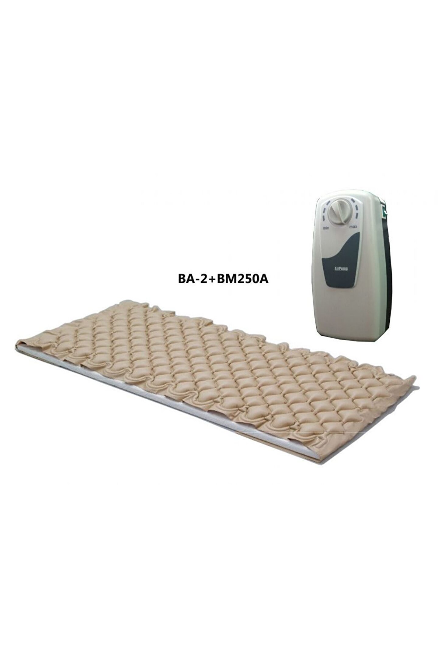 Baklava Tipi Havalı Yatak Ürün Kodu : AL-501 110-120 mmHg basınçlı, 4-4,5 L/Dk hava akışı 200 mm X 90 mm ölçüsünde katlama yerli yatak kısmı 0.3 - 0.4mm ölçüsünde PVC 3PLY malzemeden yatak 8 wat, 1 kg ağırlığında motor Ses izolasyonu yapılmış motor(sessiz çalışma) Maximum 5dk şişme süresi. Teknik Özellikler: Sınıflandırma : Sınıf I; AP/APG NO; IPX0; Tip B Uygulanan bölüm : Baklava dilimli yatak Güç kaynağı : AC 220-240V 50Hz; 5W Yatak Teknik Özellikler: Baklava şekilli hava kutucuğu sayısı: 130 adet Taşıma Kapasitesi: 120 kg Ek şilte uzunluğu (ayak ucu ve baş kısmı) 30 cm Hava bağlantı hortumları / esnek tip.