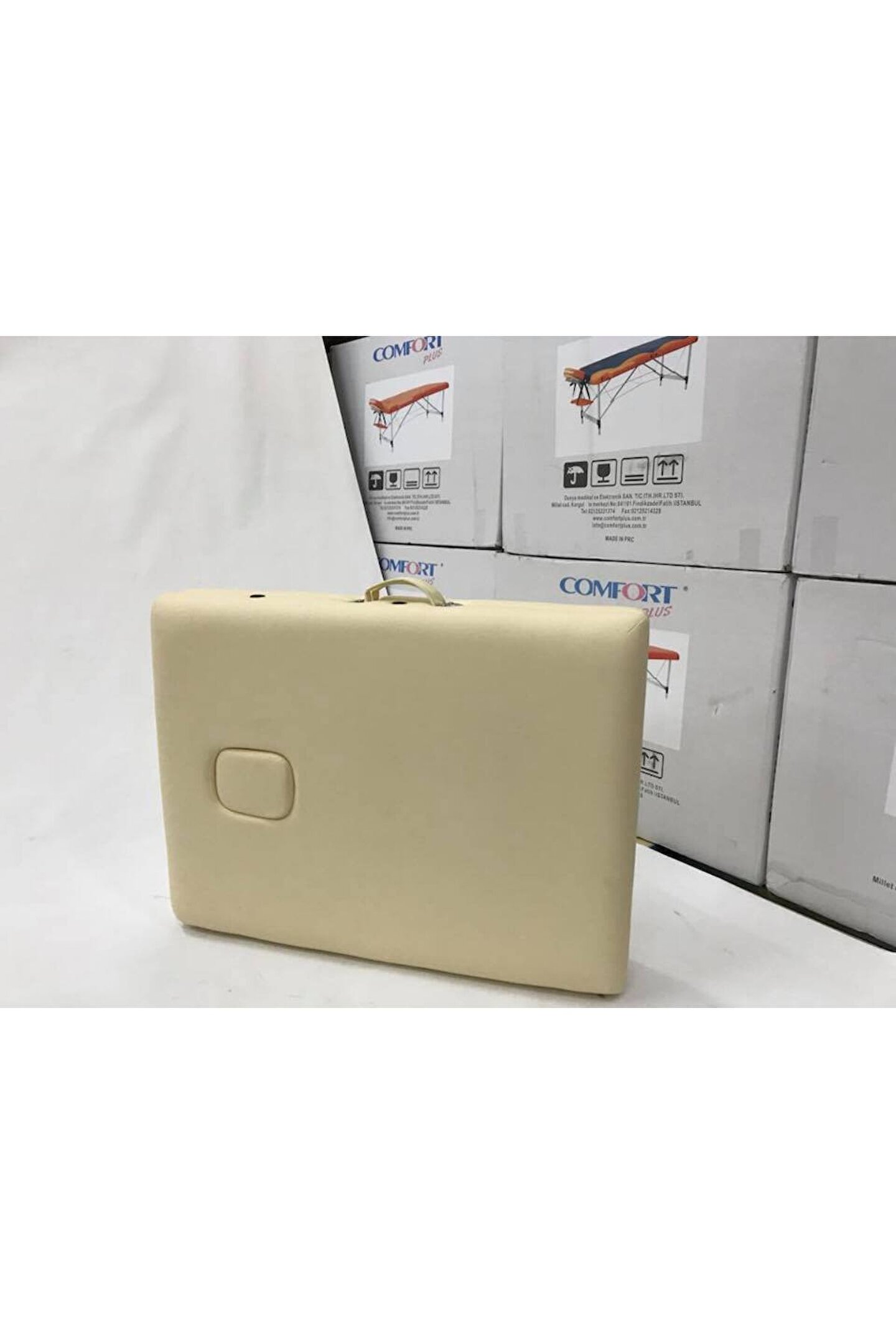 Medikaltec Çanta Tipi Masaj Masası Hacamat COMFORT Baş Kalkar Çanta Tipi Taşınabilir Masaj Masası HACAMAT çanta tipi masaj masası Ürünün Net Ağırlığı 15 kg Ürün Özellikleri:Çanta Tipi Masaj Masası aliminyum KREM 1- Ürün vinyl deri, Alüminyum ayak ve kablolardan oluşmaktadır. ; 2- Ürünün yüksekliği 54 cm ve 82 cm aralığında ayarlanabilir. ; 3- Ürünün kafa ve el konulan kısımları da katlanabilir özelliğe sahiptir. ; 4- Ürünün sırt üstü ve yüz üstü olmak üzere iki şekilde de yatarken ellerinizi koymak için yerleri vardır. ; 5- Ürünün kurulumu gayet kolay olup, herhangi bir alete gerek yoktur. ; 6- Ürünün bir adet kumaş çantası bulunmaktadır. ; Ürün katlanmış şekilde bu çantanın içine konularak taşınabilir.;