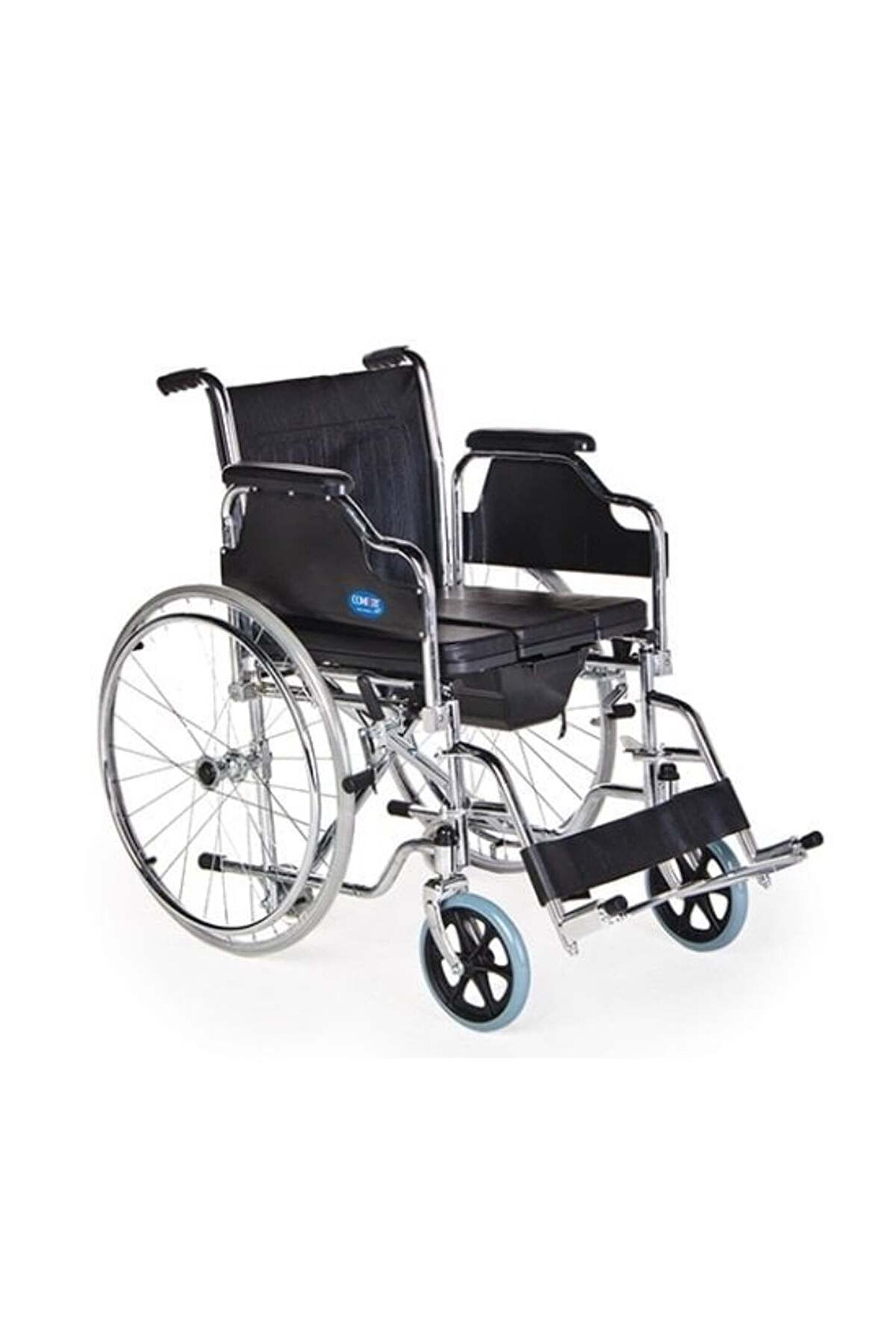 DOLGU ÖN VE ARKA TEKERLİKLİ TUVALET SANDALYESİ