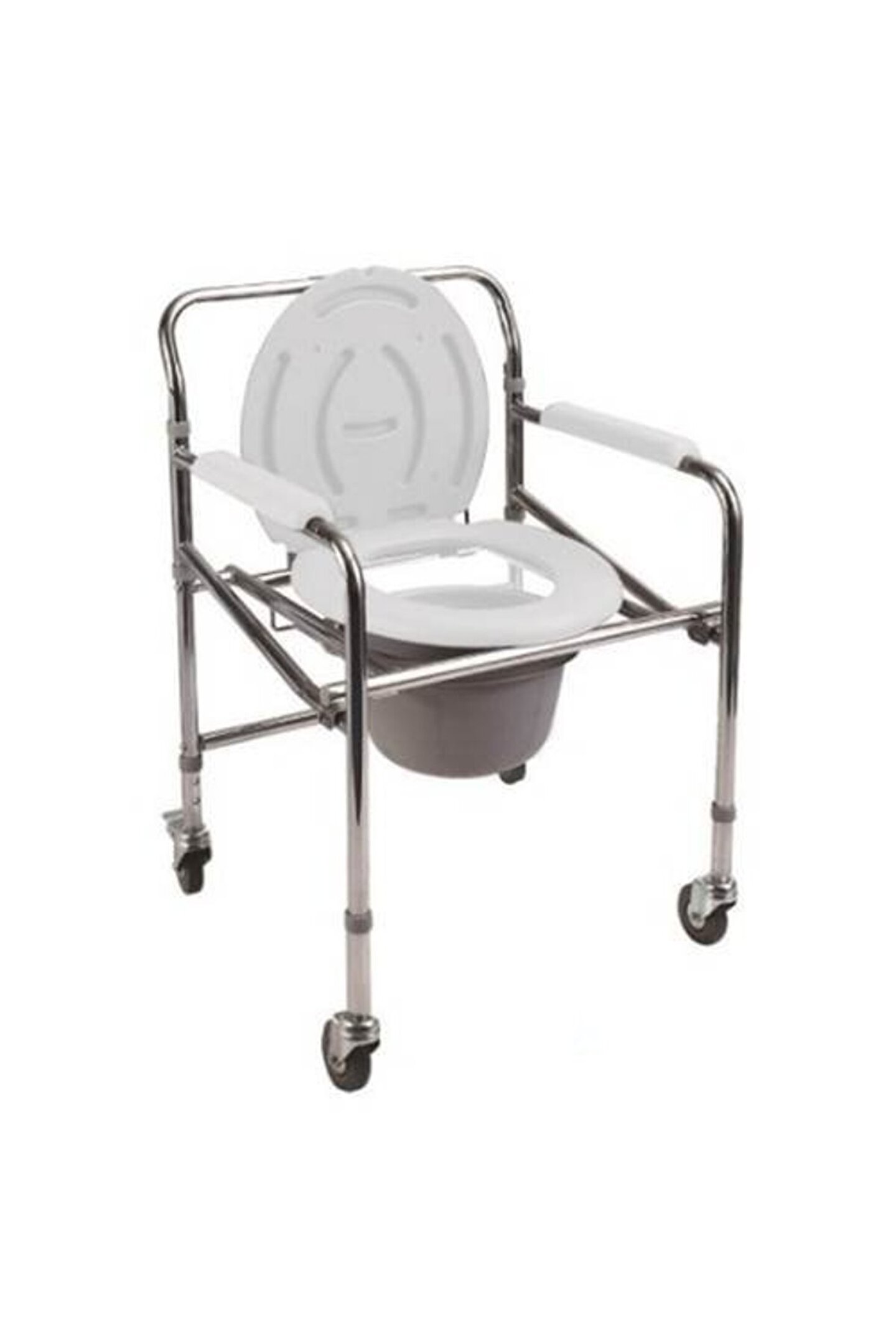 DM696 Tekerlekli Kovalı Komot Yan Kolları Aşağıya Doğru SABİT 4 Tekerlekte Fren Sistemi 100 Kg Kapasiteli.İç Mekan Kullanıma Uygun Çelik Şase Korozyona Dayanıklı Nikelaj Kaplama Dolgu Ön ve Arka Tekerlekler Arka Tekerleklerde Sabitleme Sistemi Katlanabilir Yapısı Sayesinde Yer Kaplamaz Antimicrobiyel Kapak Kapaklı Kova Klozet Yüksekliği: 36-46 cm