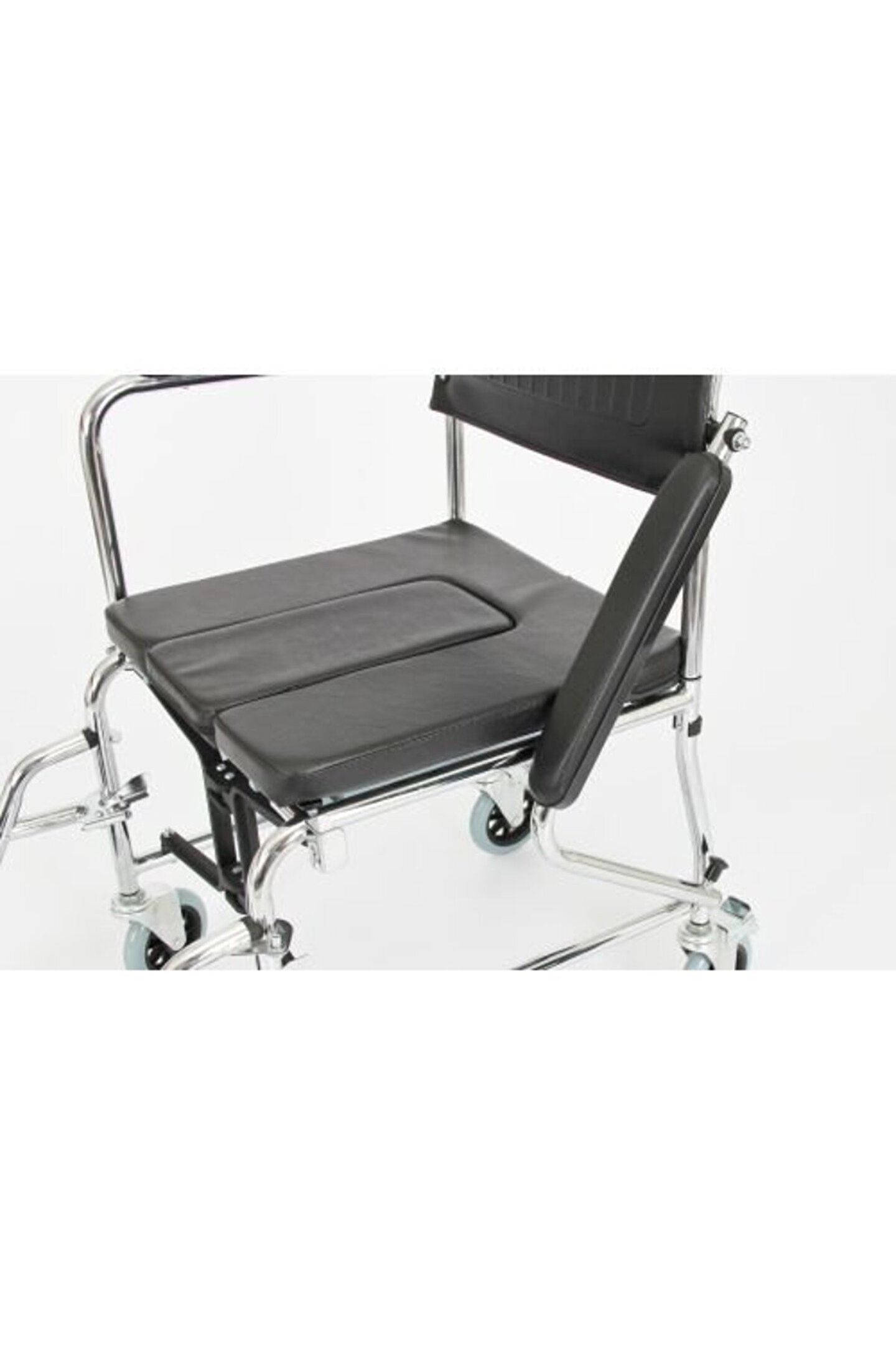 DM969 TEKERLEKLİ KOMOD Katlanabilir özelliği ile rahatlıkla taşınabilir.i Krom kaplamalı çelik şasesi ile sağlam bir iskelet oluşturur. Tuvalet lazımlığı ile klozet üzerinde olmadan da kullanılabilir. Sırtlık çıkarılabilir. Konforlu minderi sayesinde uzun süre oturulabilir. Kolçaklar aşağıya doğru hareket ettirilebilir. Ayaklıklar çıkabilir. İthal bir üründür. Teknik Özellikler Oturma genişliği: 46 cm Toplam genişlik: 55 cm Uzunluk: 80 cm Yükseklik: 95 cm Ağırlık: 10 Kg Taşıma kapasitesi: 120 Kg DM969 TEKERLEKLİ KOMOD