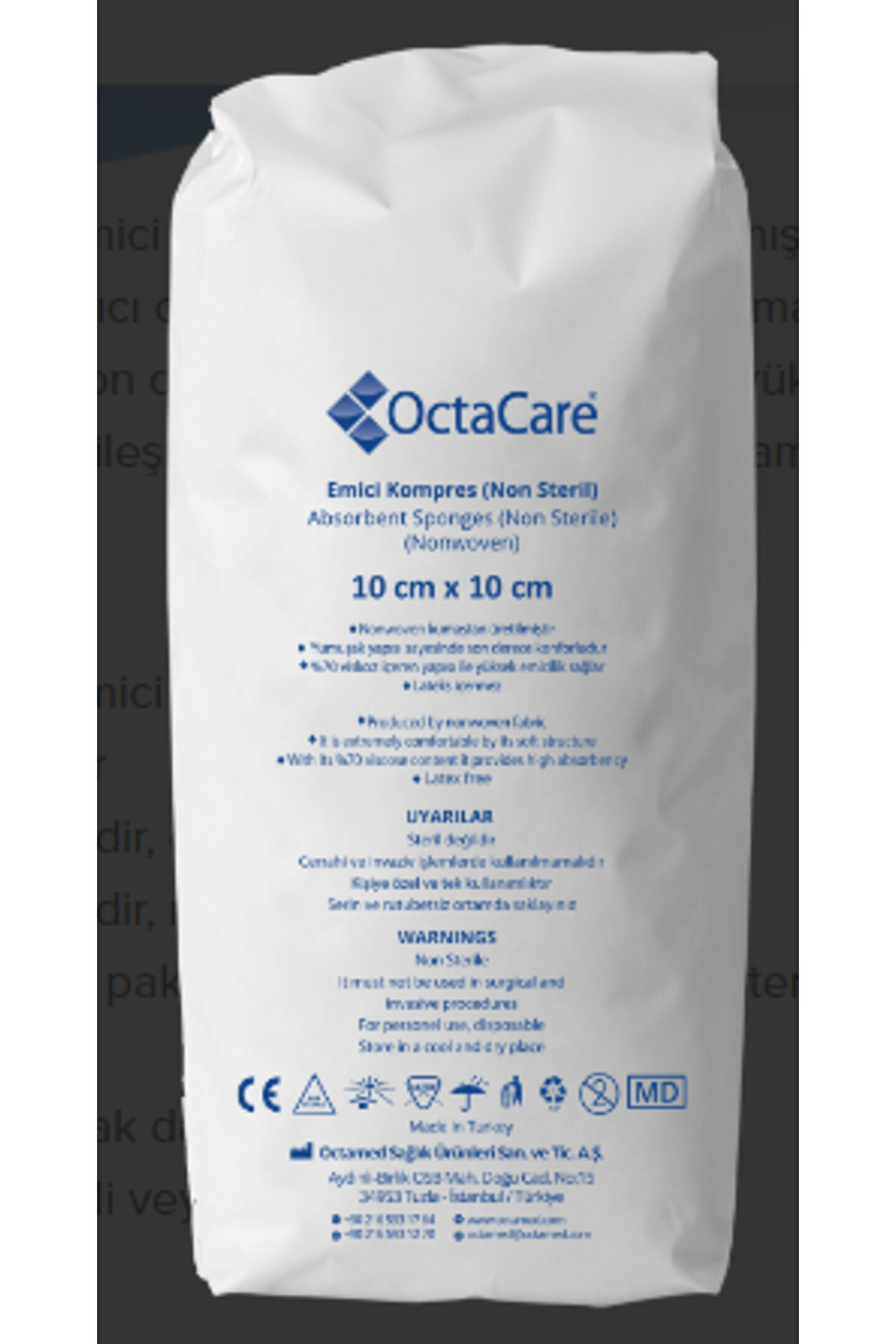 Yüksek derecede emici Nonwoven kumaştan yapılmıştır. Yaranın temizliği ve ardından steril kapatıcı olarak kullanılır. Yaraya yapışmayan özel yumuşak dokusu sayesinde son derece konforludur. Hızlı ve yüksek emiciliği sayesinde yaranın iyileşmesi için gerekli ortamı sağlamaya yardımcı olur.