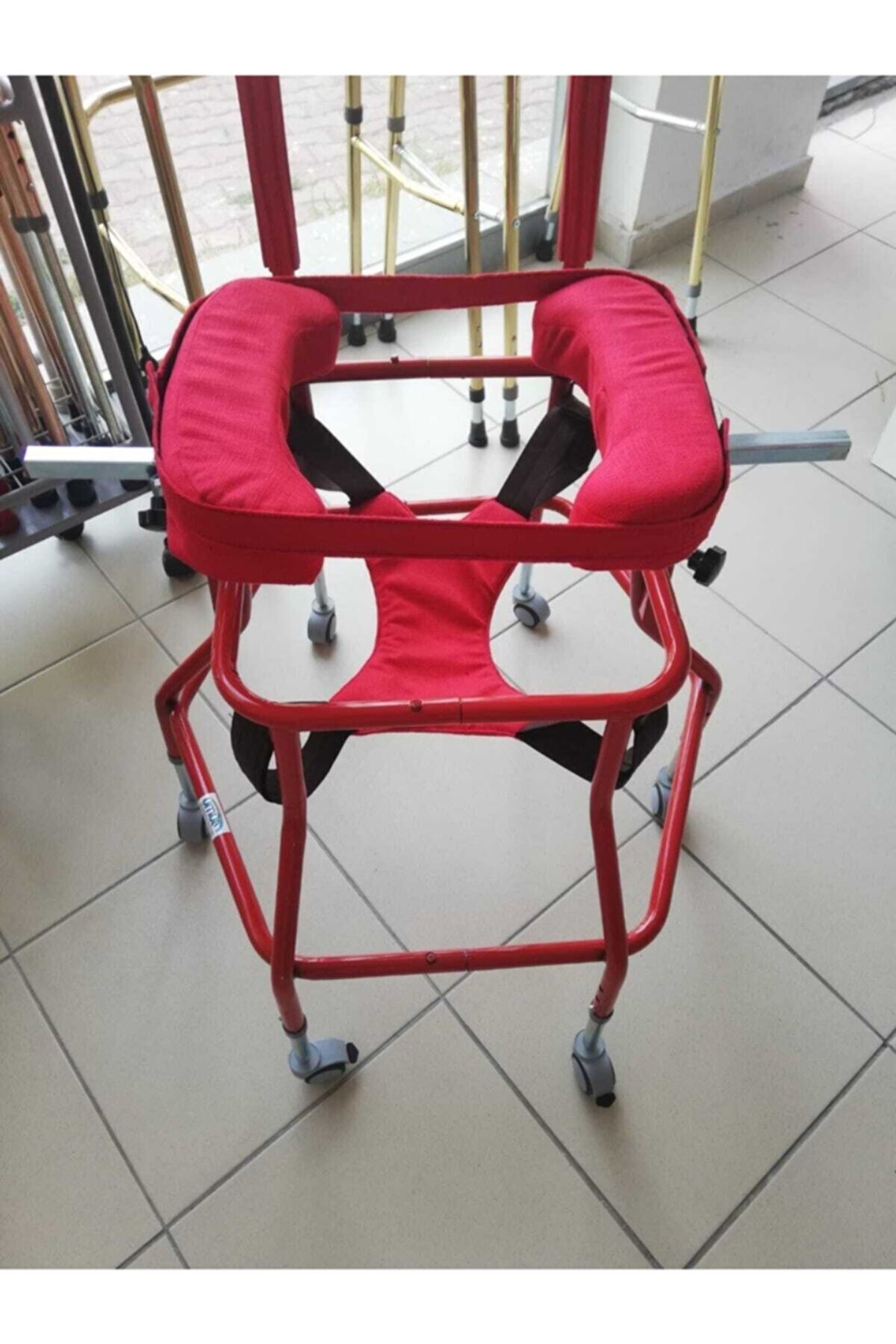 ENGELLİ ÇOCUKLARIN YÜRÜMEYE ALIŞTIRILMASI İÇİN TASARLANMIŞ FİZYOTERAPİ ÜRÜNÜDÜR. YÜKSEKLİĞİ AYARLANABİLİR.ALTIGEN ALTI AYAKLI 75MM ÇAPINDA HALI ÜZERİNDE KOLAYCA HAREKET EDEBİLEN TEKERLEKLERİ MEVCUT OLUP BU TEKERLERDEN İKİ TANESİ FRERNLİDİR. KOLTUK ALTI İLE ZEMİN ARASI MESAFE 60CM DEN 90CM E KADAR OLAN BÜTÜN KİŞİERİN KULLANIMINA UYGUNDUR. SİPARİŞ ESNASINDA ÇOCUĞUNUZUN KOLTUK ALTI VE ZEMİN ARASI MESAFEYİ ÖLÇÜP NOT OLARAK EKLEYEREK ÇOCUĞUNUZA UYGUN OLAN ÜRÜNÜN GÖNDERİMİ SAĞLANABİLMEKTEDİR. GENELLİKLE 5-13 YAŞ RASI ÇOCUKLARIN KULLANIMINA UYGUNDUR.