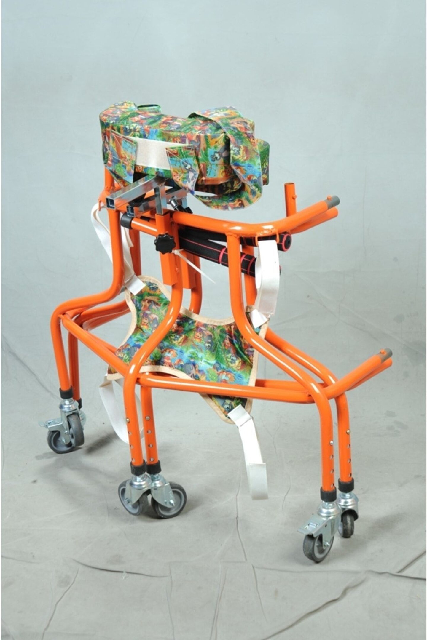 Engelli çocuk örümceği 2-4 yaş için Elektrostatik toz boyalı 6 tekerlekli yürüteç Engelli çocuk hastaların yürüme kabiliyetlerini ve enerji depolarını boşaltmak için tasarlanmış üründür.Bu ürünü kullanan . Cihaz sayesin çocuğun gelişen kemikleri direnç kazanır, gelişimi ve vucut yapısı Direnç kazanır,cihazın içine koyulan çocuğun önce emniyeti alınır ayaklarının arasından geçirilen aparatla ayakları yere bastırılır kolları koltuk altından cihazın kol koyulan mekanizmanın üstüne otutturulur ve hasta kendi başına bırakılır. Hasta sağa sola yürüyerek Hasta sağa sola yürüyerek Dengeli olarak hareket eder cihazın hareket ederken hastayı devirmemesi için cihazın altı adet geniş örümcek ayağı gibi ayakları olmasından dolayı her hangi bir yere çarpmasından Hastanın göreceği zararı engeller hasta sağa sola savrulmaz içinde rahat eder emniyetli olarak kullanır,cihaz tekerlek sistemli olup altı adet tekerleği mevcuttur hafif bir üründür .Yavrumuzun kasılması ve kendini atması varsa tavsiye edilmez Hastanın boyuna göre ayarlanır, yükseltilir ve alçaltılır, cihazın doksan derece hareket etme kabiliyeti mevcuttur, tekerlekli sandalye gibi Taşıma ürünü değildir.Yavrumuz kanepeye koltuğa tutunarak duvara yaslanarak ayakta duruyor ve adım atıyorsa ve velisi kendi parmaklarına yavrumuzun tutunarak ayakta tutup yürütebiliyorsa bu ürün önerilebilir.Tavsiye edilebilir. Engelli örümcek yürüteci Hastanın hareket etme kabiliyetini yürüme refleksi kazanmasını sağlar Bu sayede hasta gelişimini en düşük seviyede felç rahatsızlığıyla geçirir fizik tedavi doktorları tarafından tercih edilen bir üründür ,hasta için her türlü kolaylık cihazda düşünülmüştür.Cihazın herhangi bir bakımı yoktur yerli imalat olarak üretilmektedir, aksesuarlarında herhangi bir zarar veya kaybolma olasığı olursa yedek malzeme sorunu yoktur. Üretim hatasına karşı karsı garantilidir .Engelli örümcek yürüteç