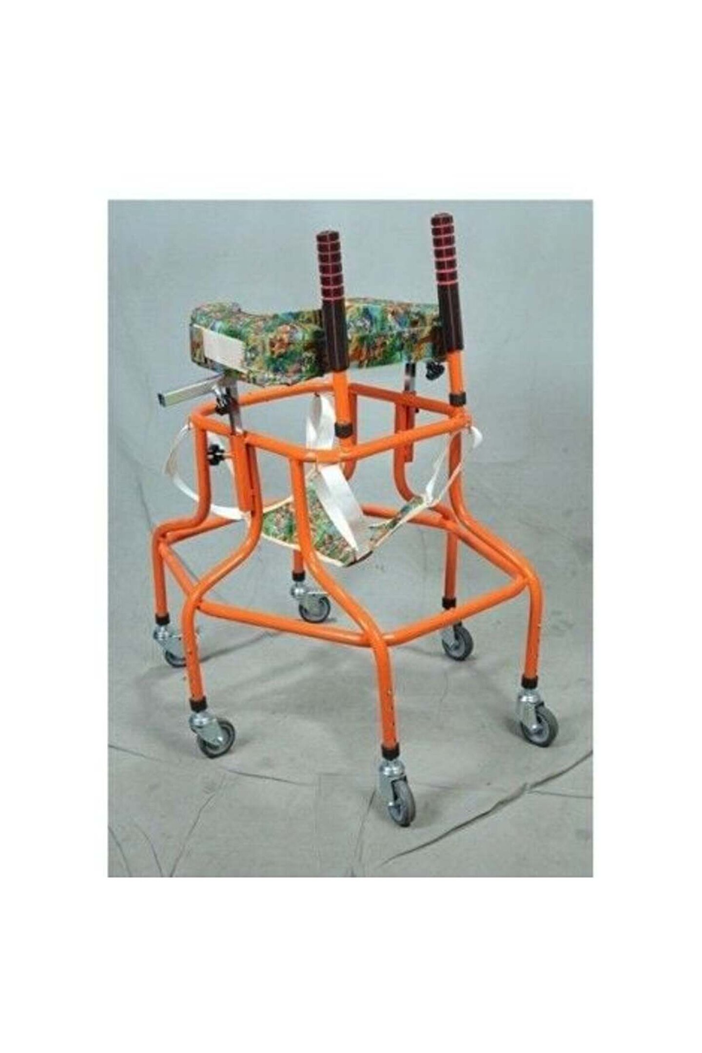 ELEKTROSTATİK TOZ BOYALI 6 tekerlekli yürüteç 02 , 15 yaş arası engelli çocuk hastaların yürüme kabiliyetlerini ve enerji depolarını boşaltmak için tasarlanmış üründür.bu ürünü kullanan çocukların kemik gelişimi sağlam ve ayakları üstüne düz ve sağlam basabilme direncini geliştirir. Cihaz sayesin çocuğun gelişen kemikleri direnç kazanır, gelişimi ve vucut yapısı direnç kazanır,cihazın içine koyulan çocuğun önce emniyeti alınır ayaklarının arasından geçirilen aparatla ayakları yere bastırılır kolları koltuk altından cihazın kol koyulan mekanizmanın üstüne otutturulur ve hasta kendi başına bırakılır. Hasta sağa sola yürüyerek dengeli olarak hareket eder cihazın hareket ederken hastayı devirmemesi için cihazın altı adet geniş örümcek ayağı gibi ayakları olmasından dolayı her hangi bir yere çarpmasından hastanın göreceği zararı engeller hasta sağa sola savrulmaz içinde rahat eder emniyetli olarak kullanır,cihaz tekerlek sistemli olup altı adet tekerleği mevcuttur hafif bir üründür .Yavrumuzun kasılması ve kendini atması varsa tavsiye edilmez Hastanın boyuna göre ayarlanır, yükseltilir ve alçaltılır, cihazın doksan derece hareket etme kabiliyeti mevcuttur, tekerlekli sandalye gibi Taşıma ürünü değildir.Yavrumuz kanepeye koltuğa tutunarak duvara yaslanarak ayakta duruyor ve adım atıyorsa ve velisi kendi parmaklarına yavrumuzun tutunarak ayakta tutup yürütebiliyorsa bu ürün önerilebilir.Tavsiye edilebilir. engelli örümcek yürüteci hastanın hareket etme kabiliyetini yürüme refleksi kazanmasını sağlar bu sayede hasta gelişimini en düşük seviyede felç rahatsızlığıyla geçirir fizik tedavi doktorları tarafından tercih edilen bir üründür ,hasta için her türlü kolaylık cihazda düşünülmüştür.Cihazın herhangi bir bakımı yoktur yerli imalat olarak üretilmektedir, aksesuarlarında herhangi bir zarar veya kaybolma olasığı olursa yedek malzeme sorunu yoktur. Üretim hatasına karşı karsı garantilidir .engelli örümcek yürüteçengelli yürüteç çeşitleri engelli yürüteç itler