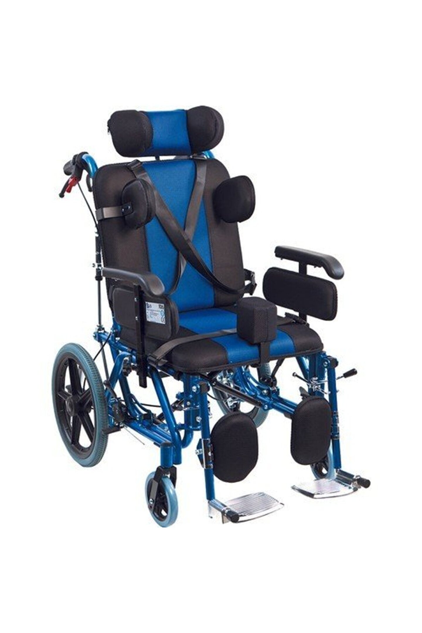 Medikaltec Golfi G-458 Selebral Palsi Manuel Tekerlekli Sandalye Golfi G-458 Selebral Palsi Manuel Tekerlekli Sandalye / Celebral Palsy Manual Wheelchair Selebral Palsi Tekerlekli Sandalye • Cerebral Palsy ve postür bozuluğu olan kullanıcılara özel tasarlanmıştır. ; • Uzun süreli kullanımlarda kullanıcı rahatlığı göz önünde bulundurularak tasarlanmış sırtlık kısmı 160° yatırılarak şezlong pozisyonu alabilmektedir. ; • Kullanıcının baş yapısına uygun ergonomiklikte pozisyonlandırılabilir ve gerektiğinde başı sabitlemek için kemeri bulunan bir başlığa sahiptir. ; • Sırtlık kısmına monte ve ayar imkanı sağlayan gövde tutucuları kullanıcının gövdesini dik pozisyonlandırmaya yarar. ; • Kullanıcının vücut tipine göre pozisyonlandırılabilir bacak arası takozu kullanım esnasında kaymayı engeller. ; Ayrıca göğüs kemeri ile de kullanıcının sabit pozisyon alabilmesi desteklenir. ; • Kullanıcı isteğine göre oturma yeri 3°-22° arası tilt olma özelliğindedir. ; • Çıkarılabilir kolçaklar kullanıcının yatak, araba vb. ; alanlara transferini kolaylaştırır. ; Ayrıca kolçaklar 5 cm dışa açılarak oturma yerini genişletilebilir özelliktedir. ; • Çıkarılabilir ayaklıkları sayesinde asansör vb. ; dar alanlarda ekstra manevra kabiliyeti sağlar. ; • Ayaklıklar kullanıcı konforu düşünülerek, bacaklarını ileri doğru uzatabilmesine olanak sağlamak için 90° kaldırılabilir olarak tasarlanmıştır. ; • Ayaklık ve baldırlık kısımları kullanıcı boyuna göre ayarlanabilir özelliktedir. ; • Katlanabilir gövde yapısı taşıma ve depolama kolaylığı sağlar. ; • Basamak atlatma çubuğu, el tutaçları ve refakatçi frenleri sayesinde refakatçi kullanımına uygundur. ; • Eğimli alanlarda ve şezlong pozisyonunda kullanımı sırasında kullanıcının geriye düşmesini engelleyen anti-tipper tekere sahiptir. ; • . ; Oturma Yeri Genişliği : 46 cm Oturma Yeri Derinliği : 40 cm Oturma Yeri Yüksekliği : 48 cm Oturma Yeri Açısı : - Sırtlık Yüksekliği : 40 cm Kolçak Yüksekliği : 25 cm Toplam Genişlik : 61 cm Toplam Yükseklik : 103 cm Toplam Uzunluk : 103 cm Katlanır Genişlik : 30 cm Arka Tekerlek : 16’’ PU Dolgu Ön Tekerlek : 6’’ PVC Dolgu Materyal : Alüminyum Tilt Özelliği : Evet Ürün Ağırlığı : 22.20 kg Maksimum Taşıma Kapasitesi : 120.00 kg Koli Ölçüleri : 81×40×97 cm;