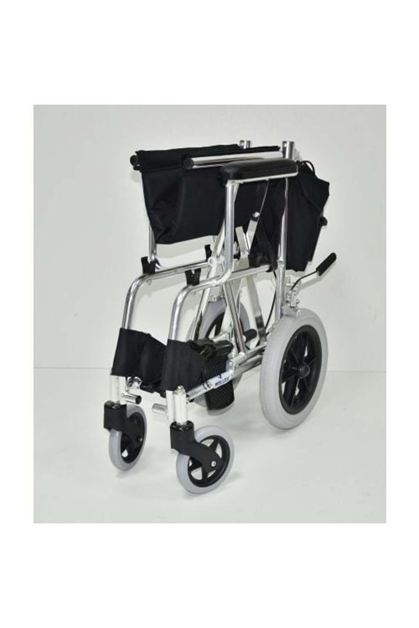 Ürün Tanıtımı •Alüminyum hafif gövde. •Sabit kolçaklar. •Geriye kalkabilen ayak kısımlar. •Dolgu ön tekerlekler. •Havalı arka tekerler. •Arka tekerlekler de sabit fren tertibatı. •Kampana fren killitleme. •Sırt Dinlenme Yeri Katlanabilir. Katlanabilir Refakatçı Tekerlekli Sandalye Teknik Özelikleri : •Ağırlık : 9,6 kg •Dış Genişlik : 65 cm •Oturma Genişliği : 46 cm •Oturma Derinliği : 42 cm• •Oturma Yüksekligi : 43,50 cm •Arka Tekerlek Yüksekliği : 31cm •Ön Tekerlek Yüksekliği : 15 cm •Yükseklik : 87 cm •Taşıma Kapasitesi : 100 kg.