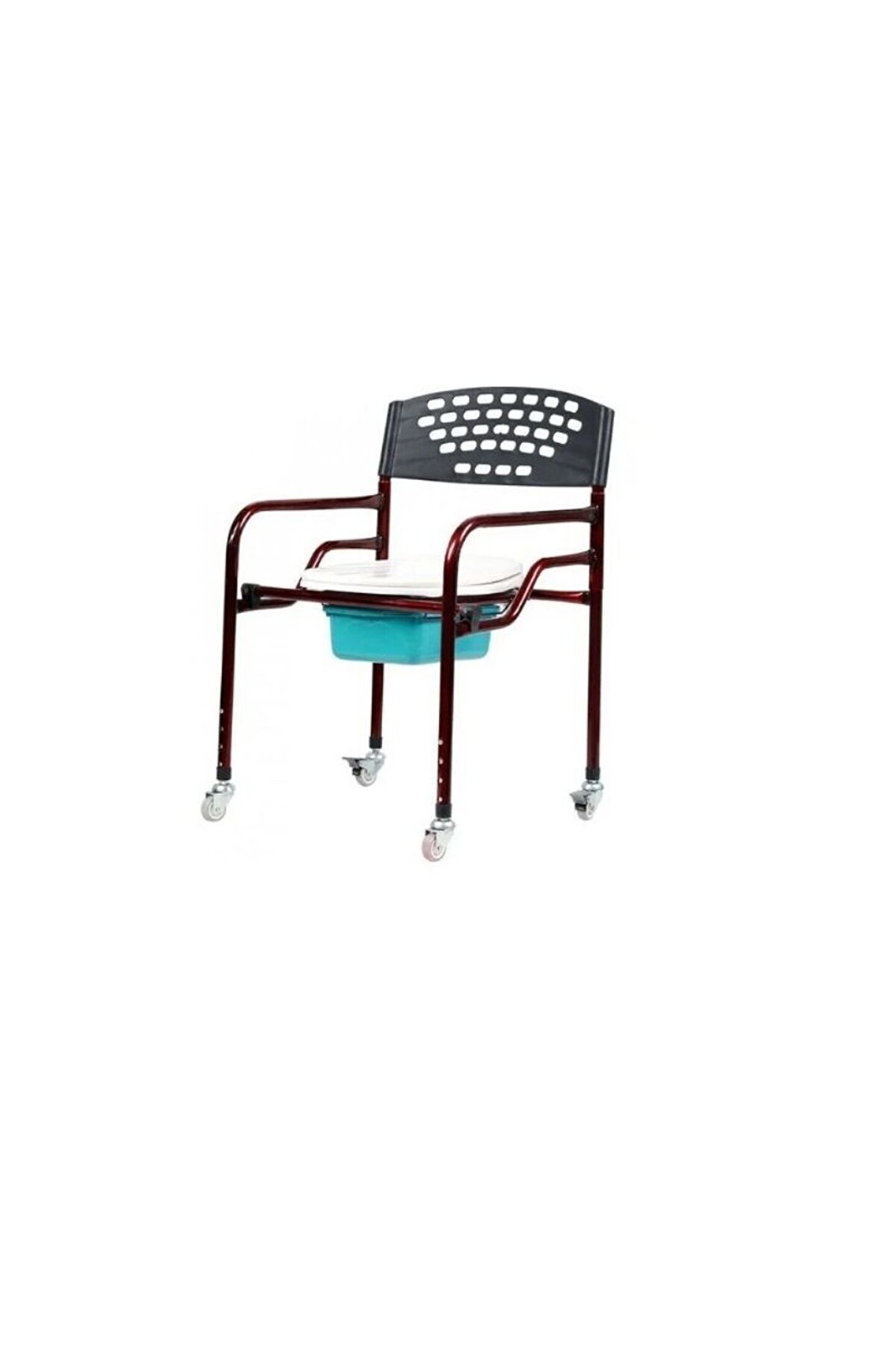 Plastik Kapaklı Tekerlekli Tuvaletli Hasta Sandalyesi Tekerlekli Tuvaletli yükseklik ayarlı 2si frenli 4 tekerlekli kovası 120 kg aşıma kapasitesi..45 cm iç genişlik Katlanabilir