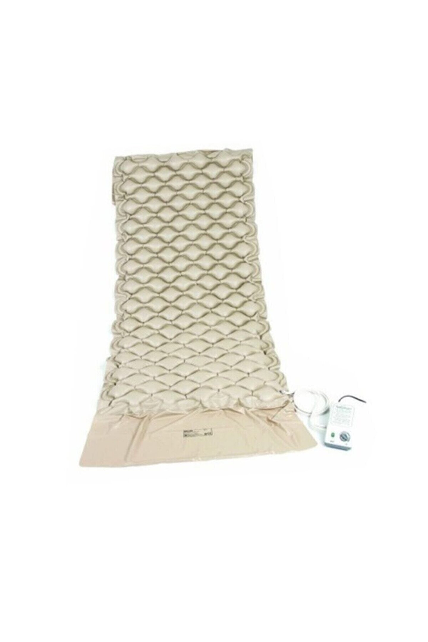 Motorlu Baklava Tipi Havalı Yatak Havalı yatak sistemi uzun süre yatmak zorunda olan hastaları, vücutlarında meydana gelen yarardan korumak için tasarlanmıştır. Sistem; bir adet hava kompresörü ile bir adet kanallı havalı yatak'tan oluşur. Değişmeli hava basıncı pompası, sürekli olarak ''a'' kümesi ve ''b'' kümesi hava bölmelerine hava üfler ve bölümlerdeki hava sürekli azalıp artarak, hastanın vücuduna uygulanan basıncın değişmesi sağlanır. Bu da hastanın kan dolaşımının daha düzenli olmasını sağlar ve sürekli yatarken maruz kalınan basınçtan oluşabilecek yaraları önler. Özellikler baklava tipi havalı yatak iki parçadan oluşur: Yatak ve pompa. ; pompa sessizlik ve enerji tasarrufu sağlamak için küçük bir kompresör içerir. ; yatak, 6 dklık zaman aralıklarıyla alternative hava hücrelerini sırayla sönüp şişerek basıncı tahliye eder. ; ünite tarafından verilen sürekli hareket, sabit basınç alanlarını azaltır ve dolaşımı arttırır. ; kullanım kolaylığı sağlayan kontrol paneli ve 10 farklı basınç ayarı. (40-100 mmhg) ; teknik özellikler ürünün ağırlığı: Yatak: 2.3kg / pompa: 1.4kg ; maksimum hasta ağırlığı: 135 kg ; çalışma gücü: ? 220v 50hz, 0.1a ; boyutlar: 200 x 90 x 7 cm ; malzeme:Tw nanya en71 tıbbi-Sınıf pvc ; motor 2 yıl garantili ;