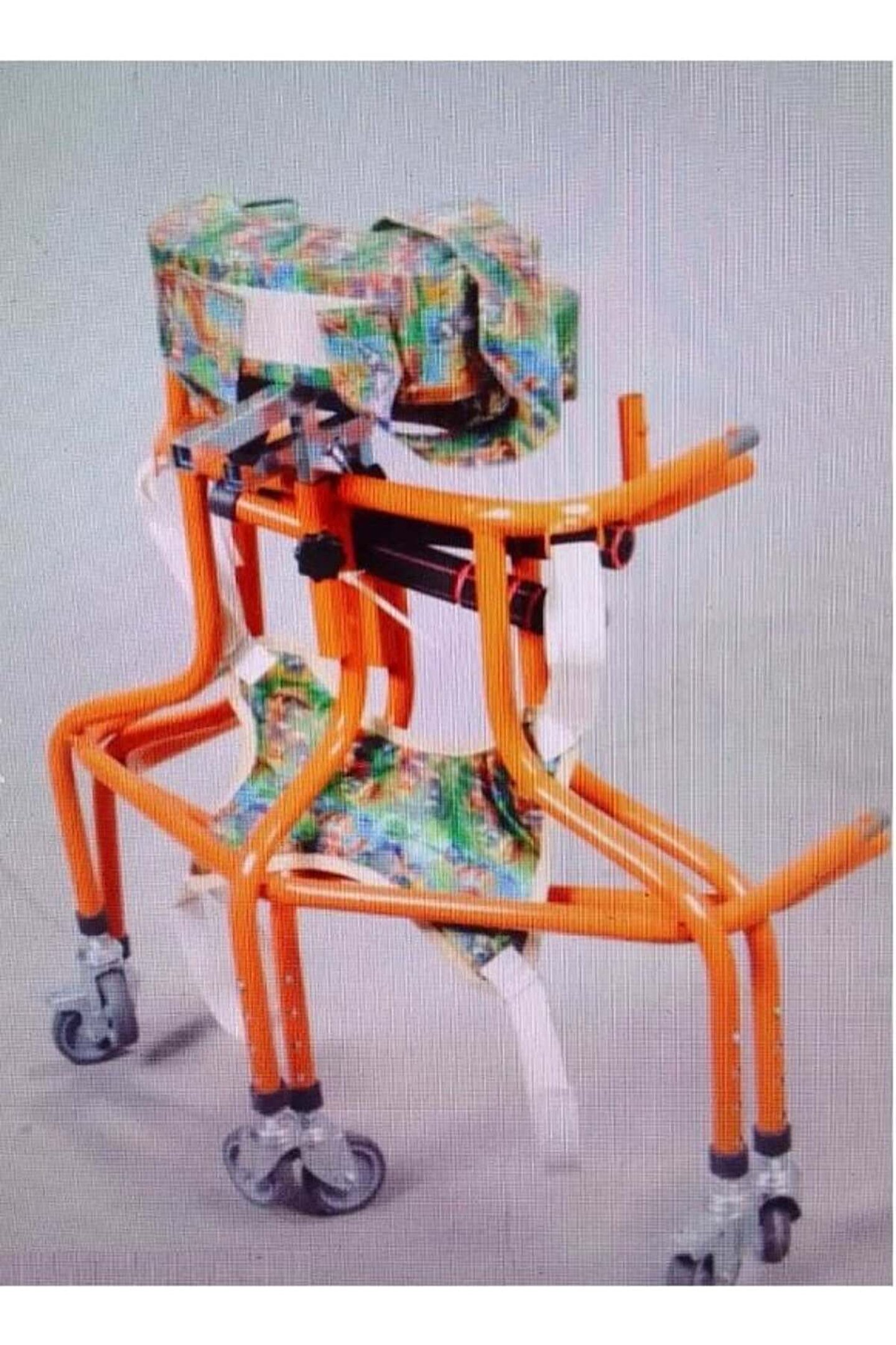 6 TEKERLEKLİ AYARLANABİLİR ELEKTROSTATİK TOZ BOYALI 6 tekerlekli yürüteç 02 , 15 yaş arası engelli çocuk hastaların yürüme kabiliyetlerini ve enerji depolarını boşaltmak için tasarlanmış üründür.bu ürünü kullanan çocukların kemik gelişimi sağlam ve ayakları üstüne düz ve sağlam basabilme direncini geliştirir. Cihaz sayesin çocuğun gelişen kemikleri direnç kazanır, gelişimi ve vucut yapısı direnç kazanır,cihazın içine koyulan çocuğun önce emniyeti alınır ayaklarının arasından geçirilen aparatla ayakları yere bastırılır kolları koltuk altından cihazın kol koyulan mekanizmanın üstüne otutturulur ve hasta kendi başına bırakılır. Hasta sağa sola yürüyerek dengeli olarak hareket eder cihazın hareket ederken hastayı devirmemesi için cihazın altı adet geniş örümcek ayağı gibi ayakları olmasından dolayı her hangi bir yere çarpmasından hastanın göreceği zararı engeller hasta sağa sola savrulmaz içinde rahat eder emniyetli olarak kullanır,cihaz tekerlek sistemli olup altı adet tekerleği mevcuttur hafif bir üründür .Yavrumuzun kasılması ve kendini atması varsa tavsiye edilmez Hastanın boyuna göre ayarlanır, yükseltilir ve alçaltılır, cihazın doksan derece hareket etme kabiliyeti mevcuttur, tekerlekli sandalye gibi Taşıma ürünü değildir.Yavrumuz kanepeye koltuğa tutunarak duvara yaslanarak ayakta duruyor ve adım atıyorsa ve velisi kendi parmaklarına yavrumuzun tutunarak ayakta tutup yürütebiliyorsa bu ürün önerilebilir.Tavsiye edilebilir. engelli örümcek yürüteci hastanın hareket etme kabiliyetini yürüme refleksi kazanmasını sağlar bu sayede hasta gelişimini en düşük seviyede felç rahatsızlığıyla geçirir fizik tedavi doktorları tarafından tercih edilen bir üründür ,hasta için her türlü kolaylık cihazda düşünülmüştür.Cihazın herhangi bir bakımı yoktur yerli imalat olarak üretilmektedir, aksesuarlarında herhangi bir zarar veya kaybolma olasığı olursa yedek malzeme sorunu yoktur. Üretim hatasına karşı karsı garantilidir .engelli çocuk yürüteci cocuk yürüteç engelli çocuk yürüteci cocuk yürüteç.
