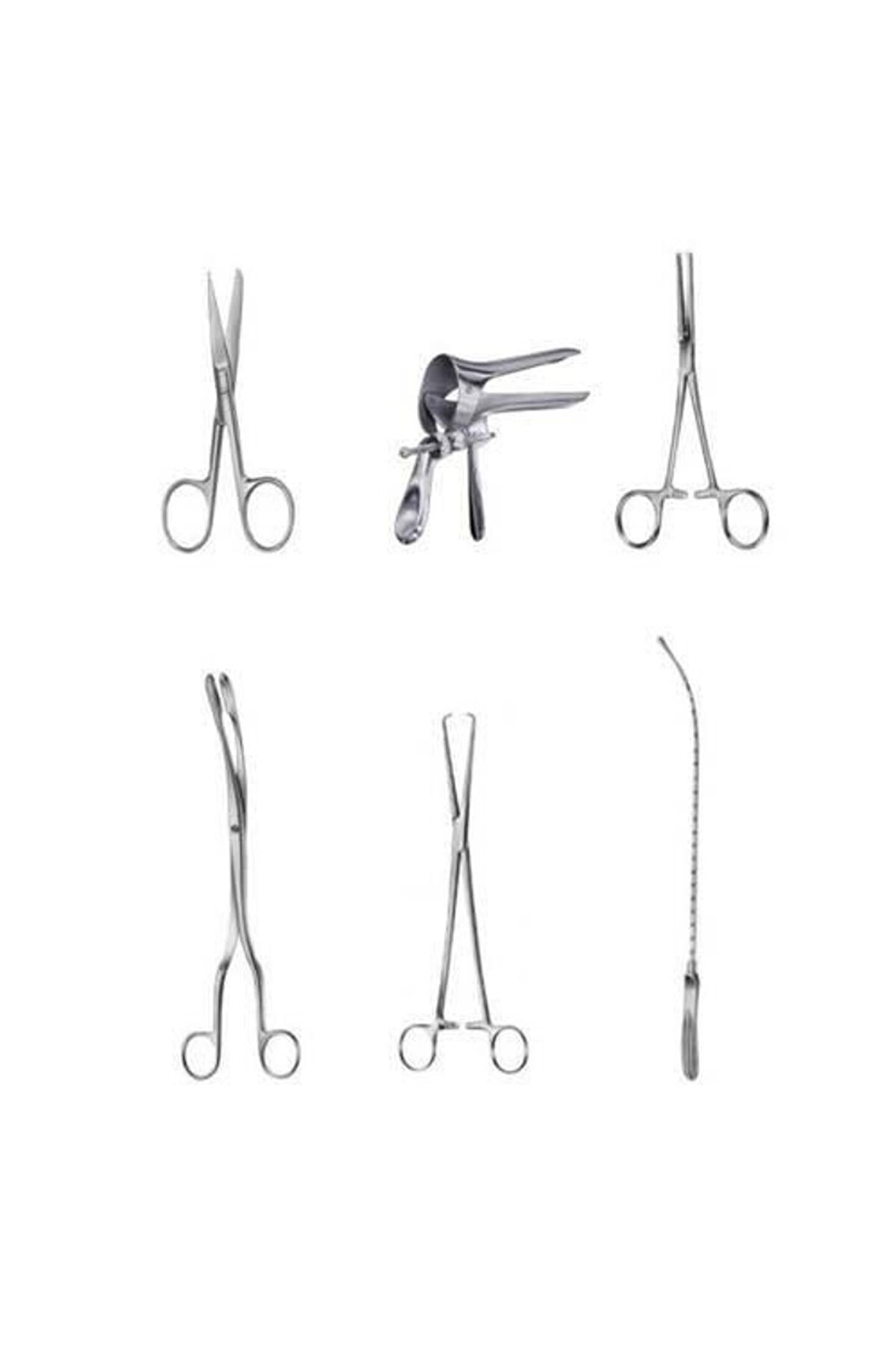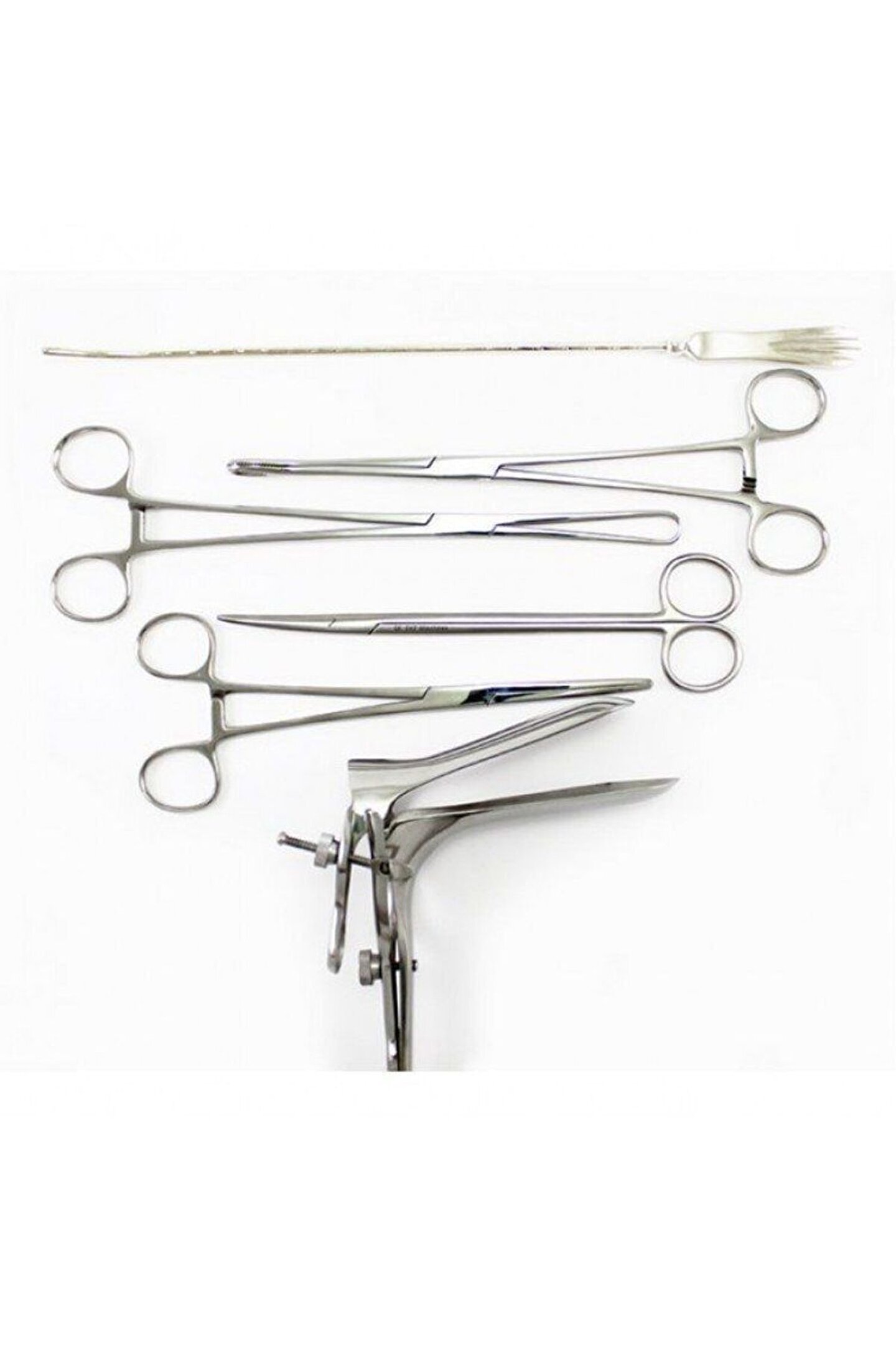 Toplam 6 farklı parçadan oluşan ria seti içerisinde 25 cm tenekulum tek dişli, 32 cm historemetri, 24 cm forester (over) pensi, vaginal spekulum graves, 20 cm uterus makası eğri ve 20 cm kocher pensi dişli bulunmaktadır.