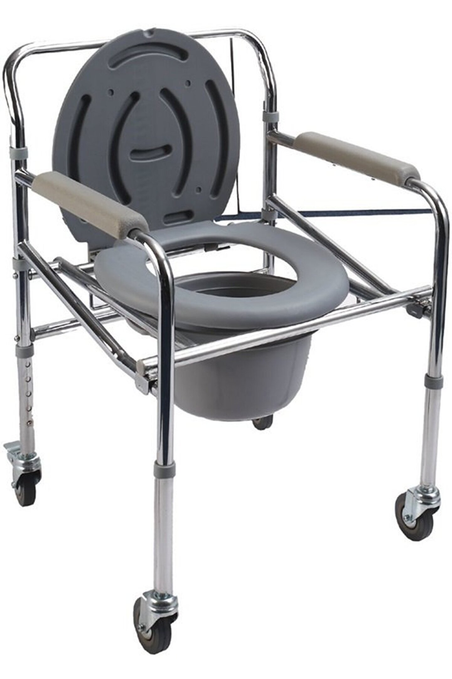 Tekerlekli Klozet Yükseltici Katlanır ithal Oturma Yeri Yüksekliği : 45 cm PR; 771 Katlanır Komot Oturma Yeri Genişliği : 45 cm Oturma Yeri Derinliği : 43; 50 cm Sırtlık Yüksekliği : 32; 50 cm Kolçak Yüksekliği : 20 cm Toplam Yüksekliği : 76; 50; 98; 50 cm Toplam Uzunluk : 53 cm Toplam Genişlik : 53 cm Ön Tekerlek : 3’’(75 mm) Arka Tekerlek : 3’’(75 mm) Ürün Ağırlığı : 7; 40 kg Maks; Taşıma Kapasitesi : 100; 00 kg Malzeme Rengi : Krom Parçaların Rengi : Beyaz; Gri Karton Ölçüleri : 53×18×79 cm Adet/Karton : 1 Adet/Karton;