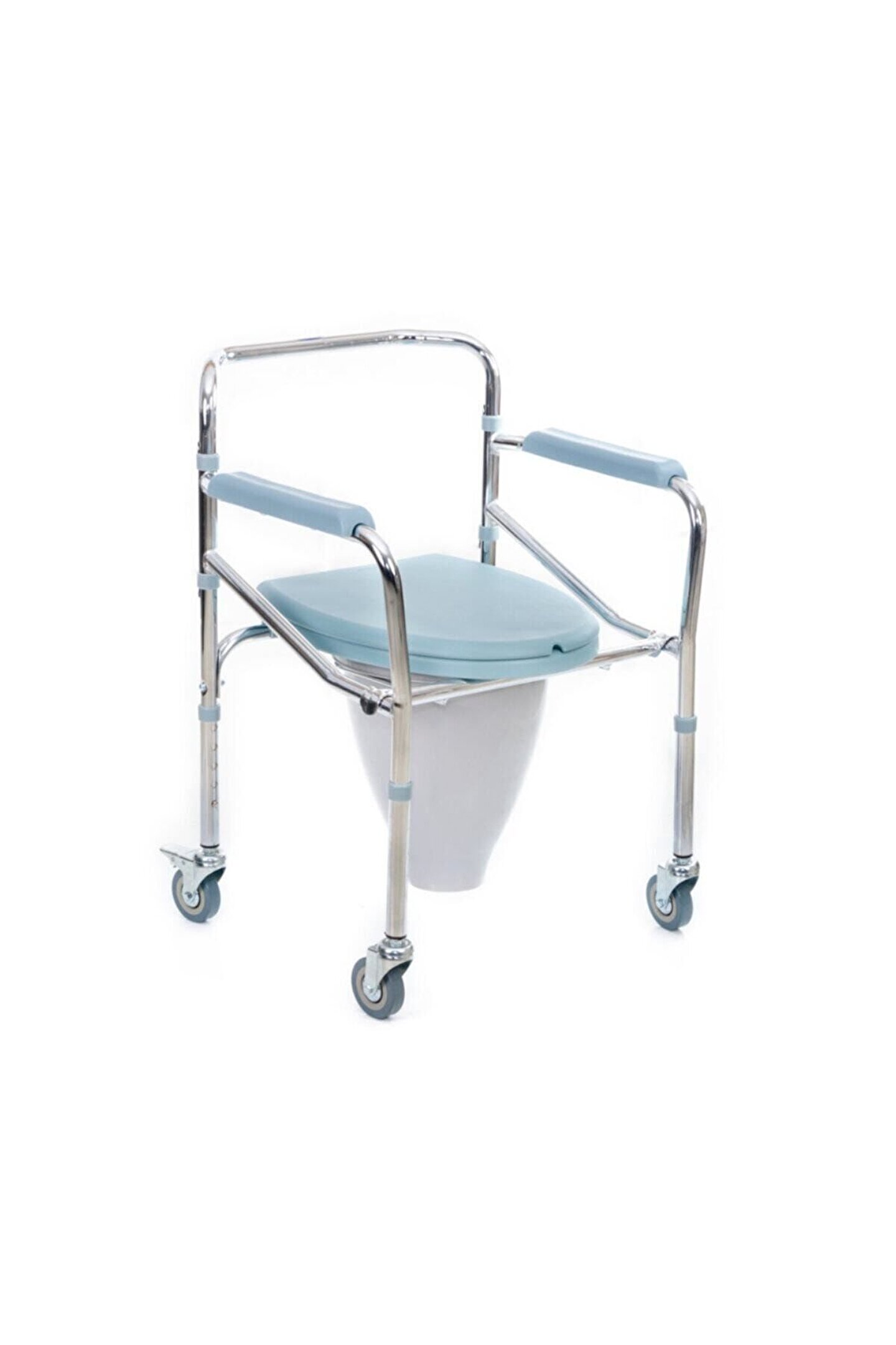 medikaltec Tekerlekli Sandalye Hasta Tuvalet Sandalyesi Uzun Kovalı Komot Sandalye