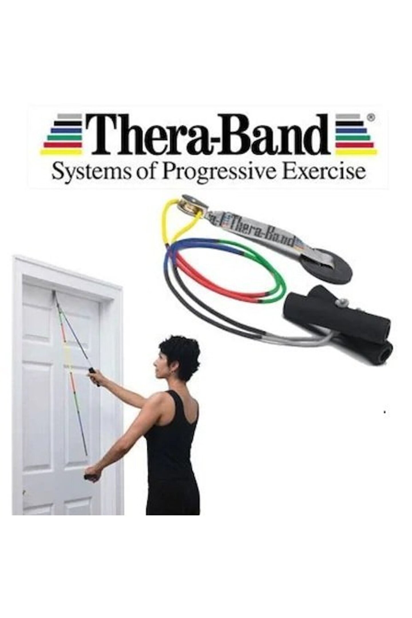 Thera-Band Shoulder Pulley özellikle omuz tedavisi gören ve omuz hareket kabiliyetini yeniden kazanmak için egzersiz yapması gereken hastalara yardımcı olmak amacıyla tasarlanmış omuz çalıştırma egzersiz aletidir. Geleneksel omuz çalıştırma aletlerinden (makaralarından) farklı olarak, Thera-Band Shoulder Pulley siyah renkle işaretlenerek bölmelere ayrılmış özel elastik bir ipe sahiptir. Bu işaretlemeler sayesinde egzersiz sırasında kullanıcının hangi noktada olduğunu tespit etmesini mümkündür. Omuz egzersizi veya fizik tedavi yapan hastanın veya kullanıcının bir siyah işaretli noktadan diğer işaretli noktaya ilerlemesini görmesi, hareket kabiliyetindeki artışı anlayabilmesini sağlamaktadır. Thera-Band Shoulder Pulley üzerindeki siyah işaretler kullanıcının hareketi nerede başlayıp nerede durduracağını da belirler. Bu işaretler kullanıcının omuz egzersizlerini kontrollü bir şekilde yapması için tasarlanmıştır. Hastalar ne kadar ilerlediklerini Shoulder Pulley üzerindeki işaretlerle görebilirler. Bu ise hastaların motivasyon düzeyini arttırır. Thera-Band Soulder Pulley üzerindeki renkler aynı Thera-Band egzersiz bantlarında olduğu gibi esneme/zorluk düzeyini göstermektedir. Kullanımı çok kolay olup egzersizlere başlamadan önce sadece kapıya tutturmanız yeterlidir. Fizik tedavi uzmanları ve doktorları tarafından tavsiye edilmektedir. Thera-Band Shoulder Pulley evde veya fizik tedavi merkezlerinde kullanabilirsiniz. Kullanma kılavuzunu okumadan kullanmaya başlamayınız.