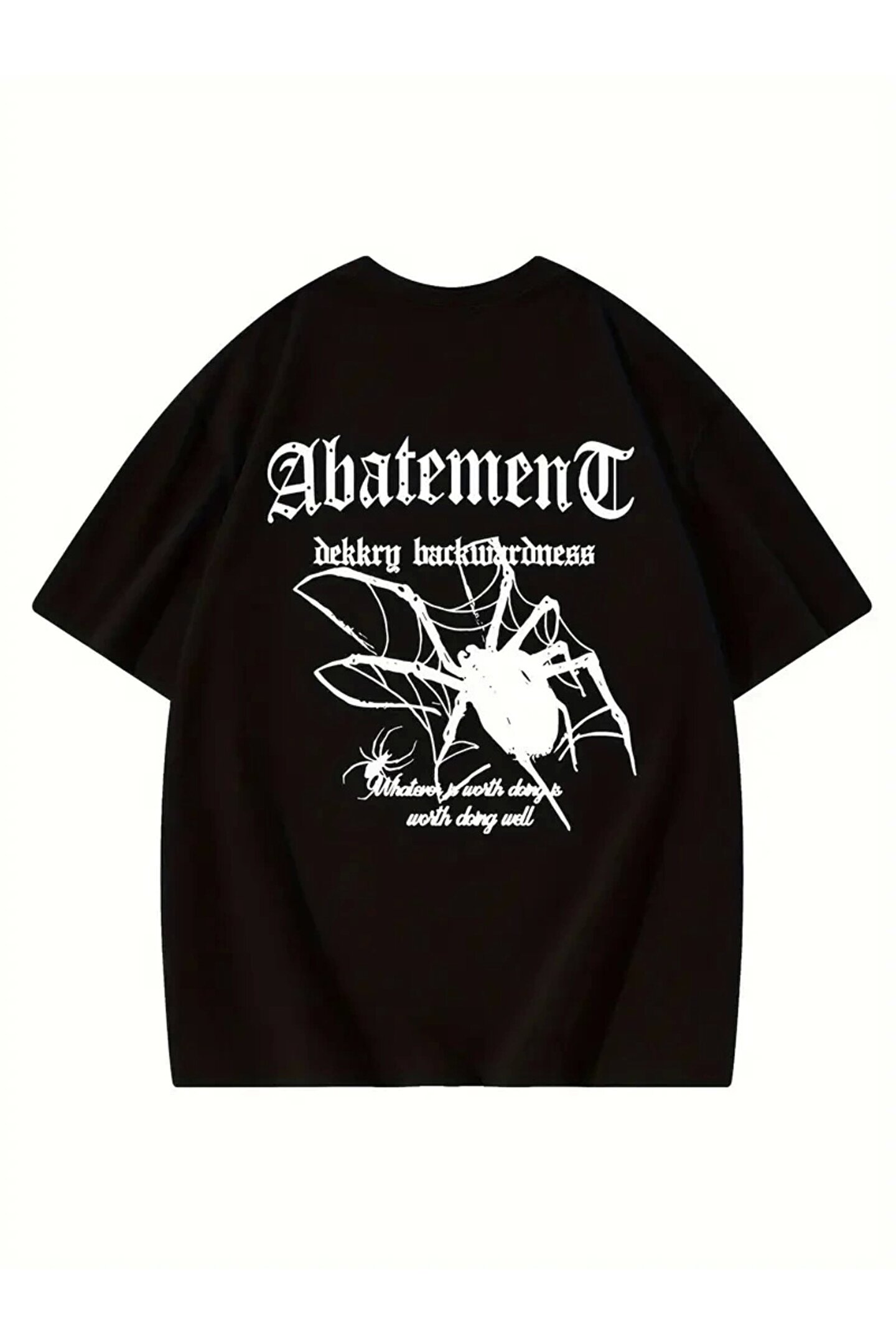 Megstill Örümcek Ağı Desenli Baskılı Oversize Bisiklet Yaka T-shirt - Siyah