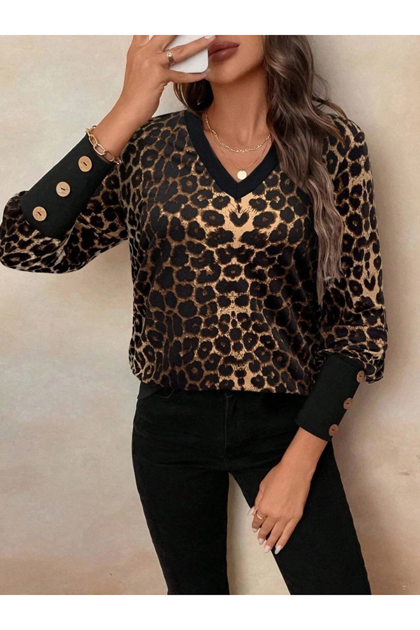 Meis Concept MDB Kadın Uzun Kollu V Yakalı Desenli Süprem Bluz