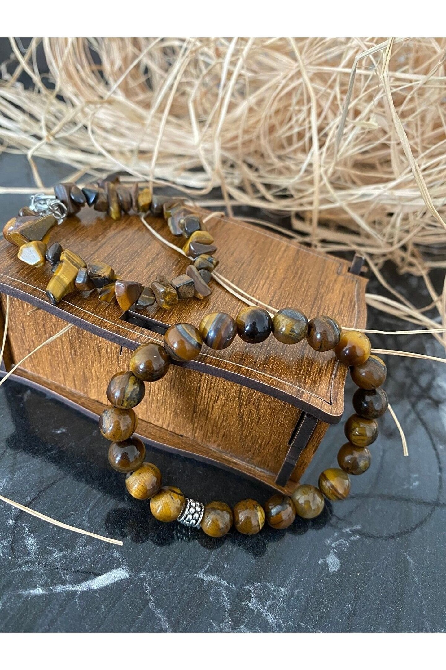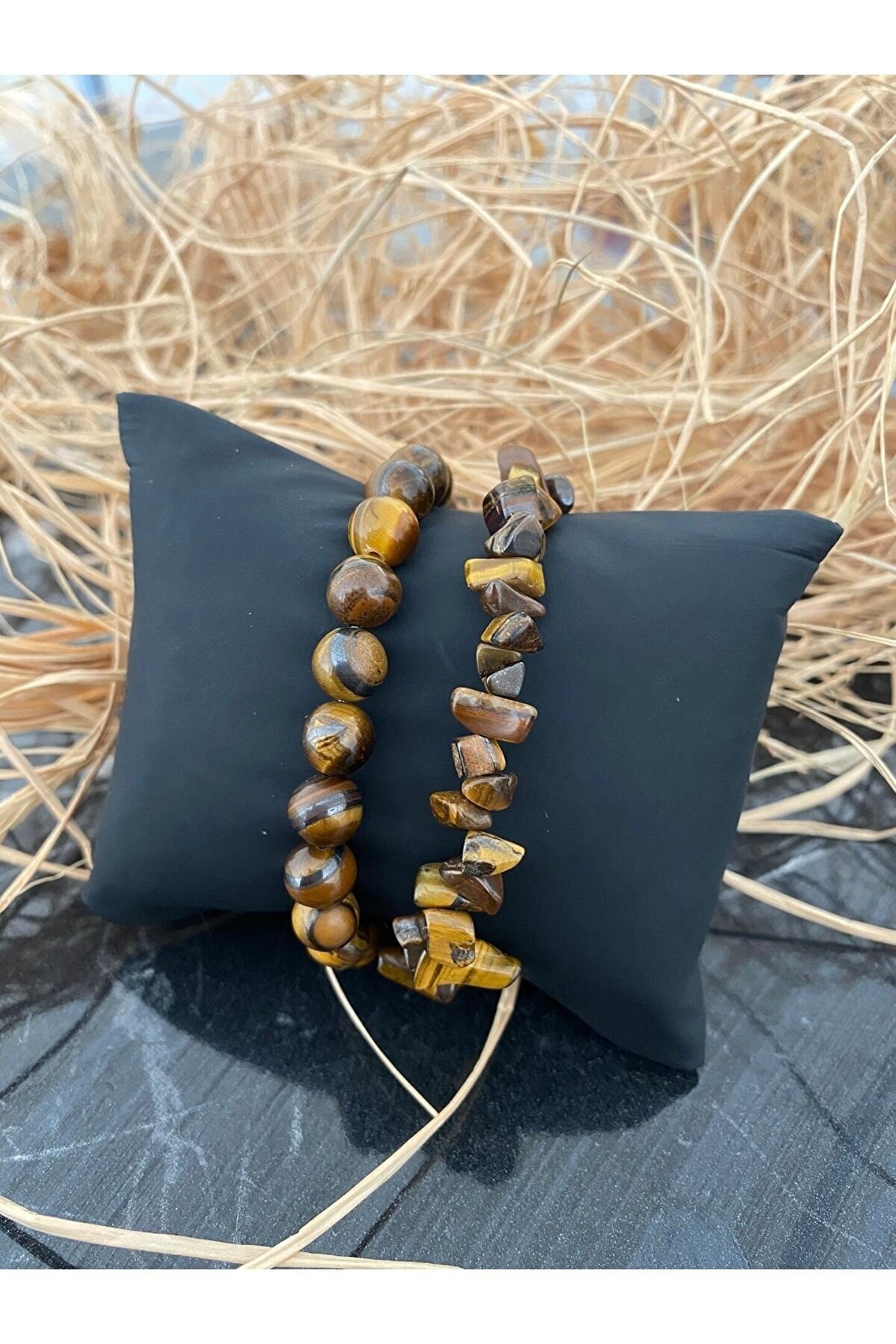 Melek Bozkurt Doğal Taş Kaplan Gözü Kırık Taş Sevgili Çift Kombini