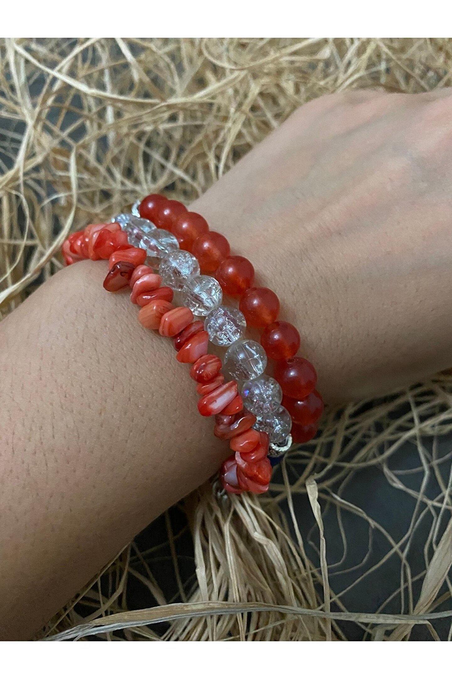 Dogal taş Kombin bileklik Necef Taşı Özellikleri ve Faydaları: Sindirim ve kan dolaşımı sistemini sağlıklı tutar. ; İçindeki suyun kişiye huzur ve ferahlık verdiğine inanılır. ; Her türlü olumsuz enerjiyi içine hapseder, bedeni ve zihni korur. ; Kullanan kişiye şans getirir. ; Ruhsal ve fiziksel dengeyi sağlar. ; Akik Taşı Faydaları Nelerdir? Kişiyi ruhsal açıdan korur. ; Strese karşı koruyucu etkisi vardır. ; İnsanı negatif enerjiden kurtarır. ; Cilt hastalıklarına iyi gelir. ; Bedeni güçlendirici etkisi vardır. ; Kendini ifade etmekte zorlananlara iyi gelir. ; Ağrıları azaltır. ; Taşıyan kişiyi tehlikelere karşı koruyucu etkisi vardır. ; Mercan Taşının Faydaları Kalbi ve dalağı kuvvetlendirir. ; Aile içinde ve arkadaşlar arasında saygınlığı güçlendirir. ; Kişinin ruhsal anlayışını güçlendirir. ; Konsantrasyon eksikliğini giderir. ; Saflığın ve dengenin korunmasını sağlar. ; Özellikle kırmızı ve pembemsi cinsi dikkat çekici olduğundan nazara karşı etkilidir.;