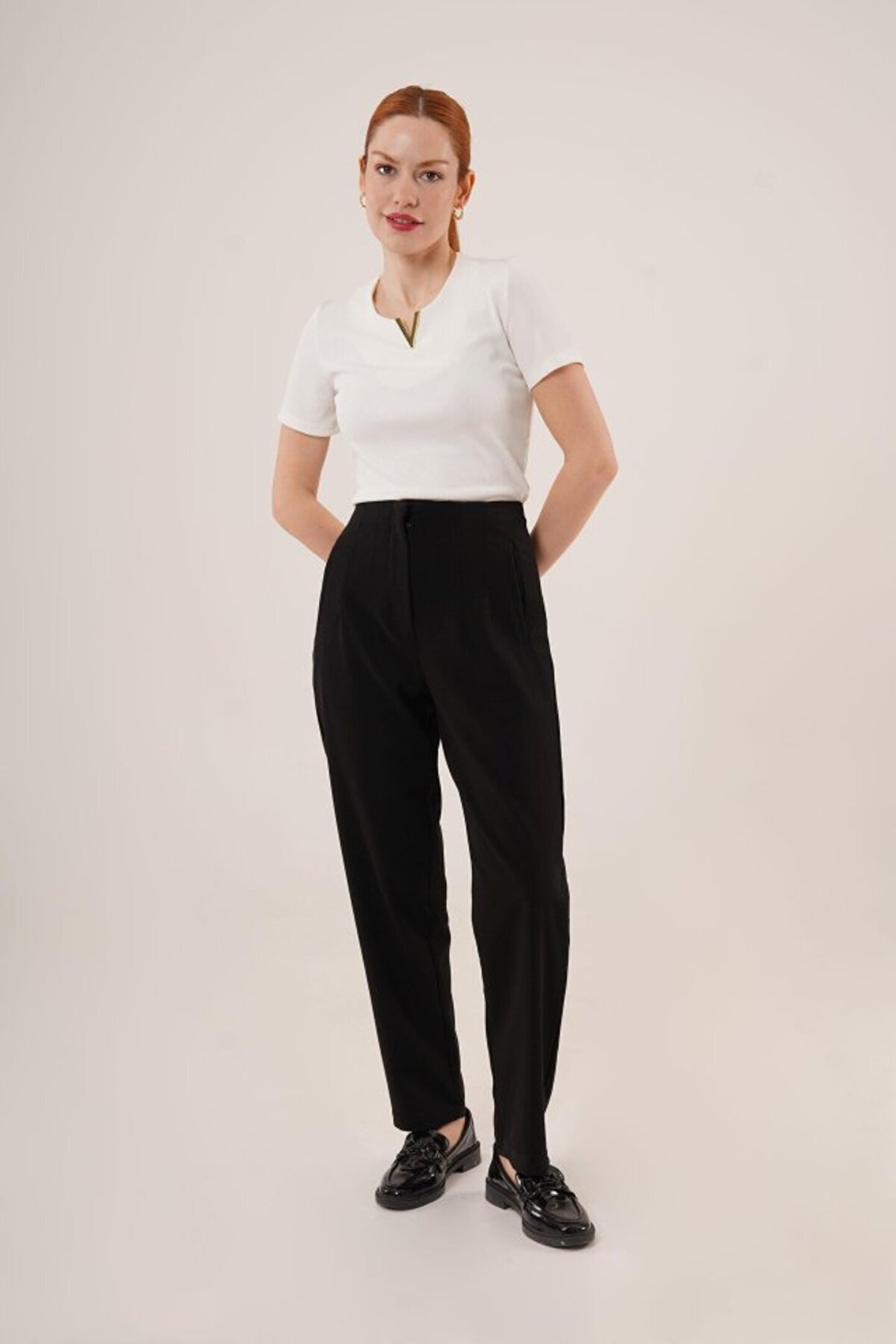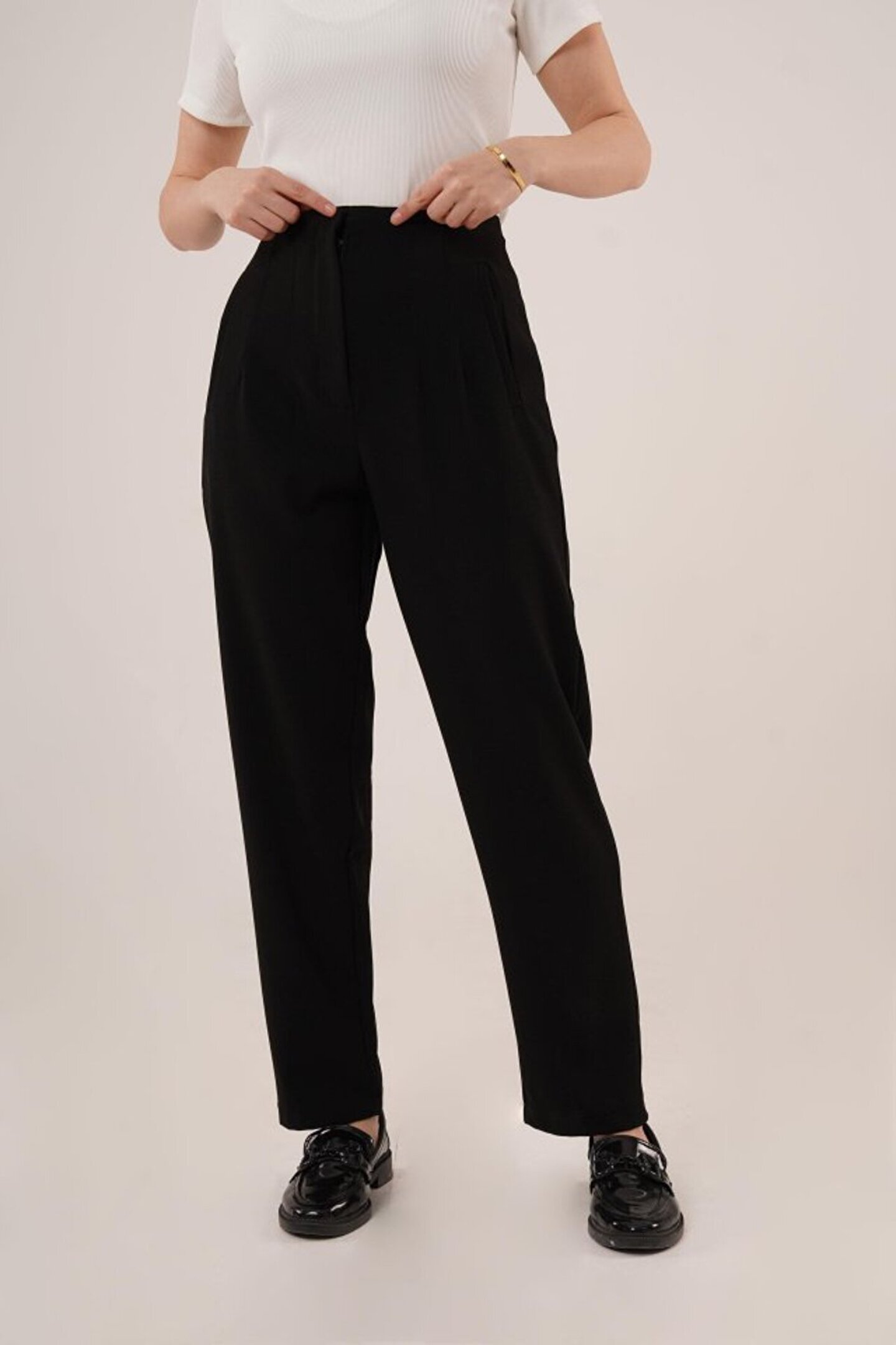 Melek Moda Gökyüzü Moda Çift Pens Detaylı Siyah Pantolon