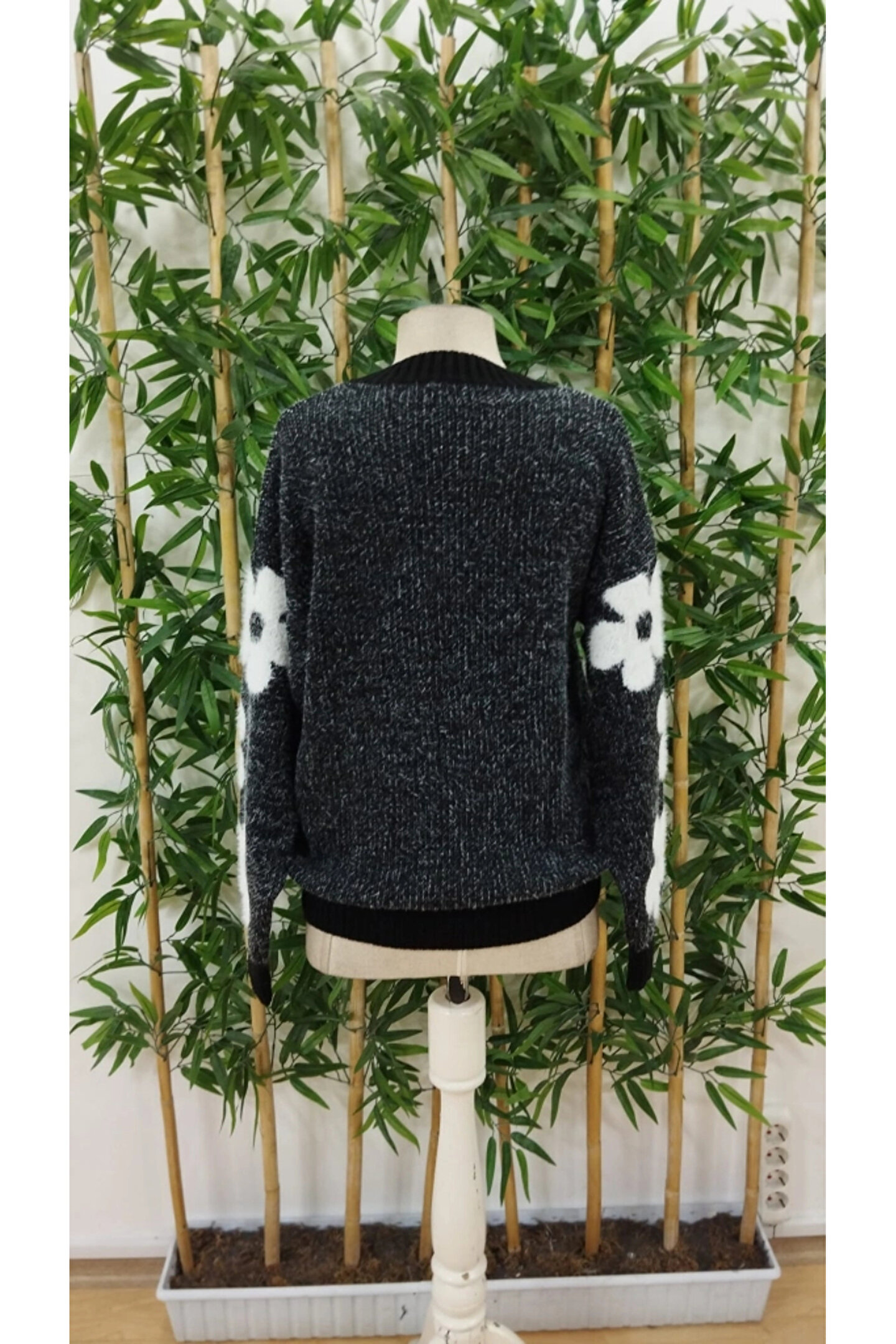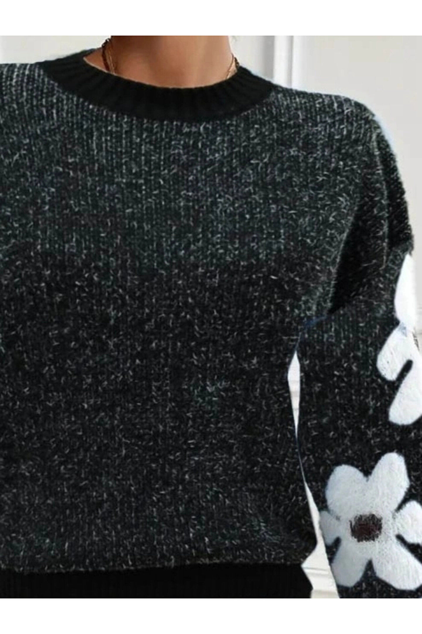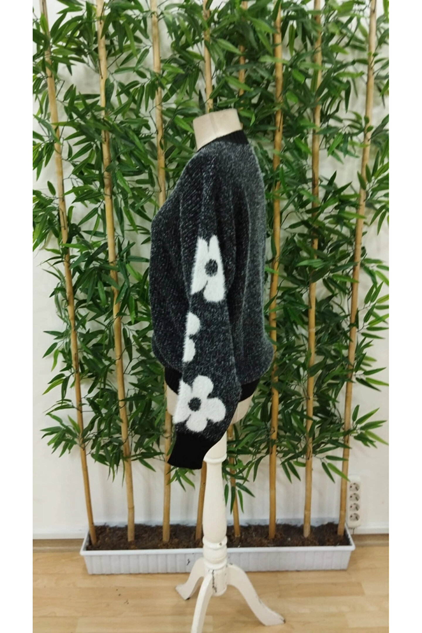Melek Moda Kadın Uzun Kollu Bisiklet Yaka çiçek Desenli Triko Bluz