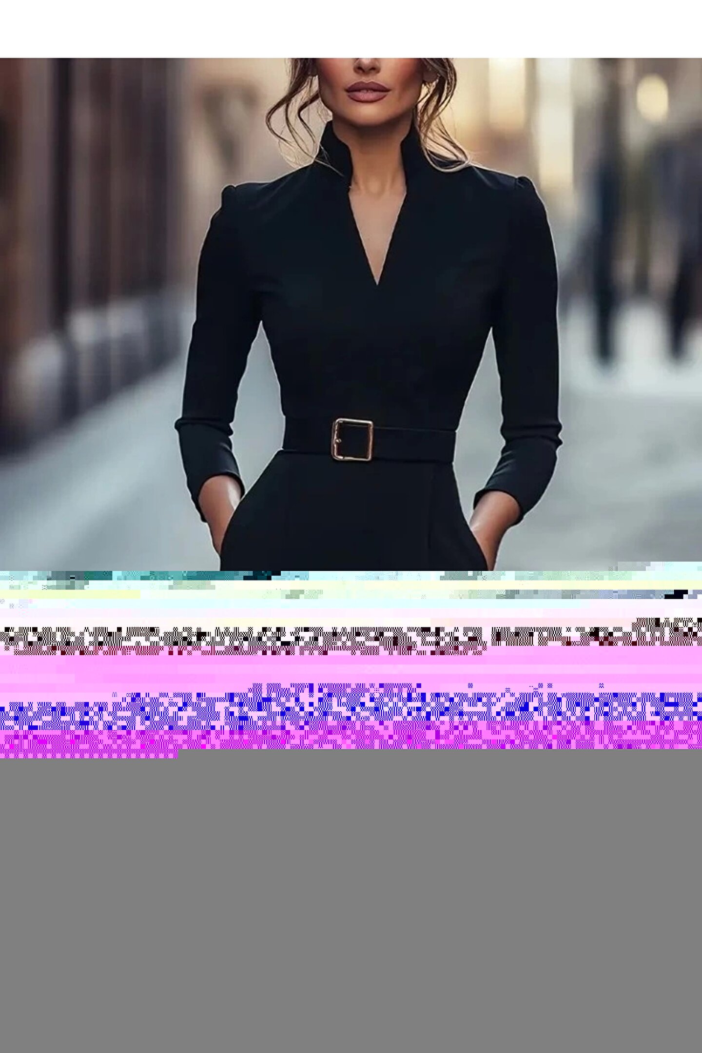 Melek Moda Kadın Uzun Kollu Hakim Yaka Beli Kemerli Cepli Midi Ithal Krep Elbise