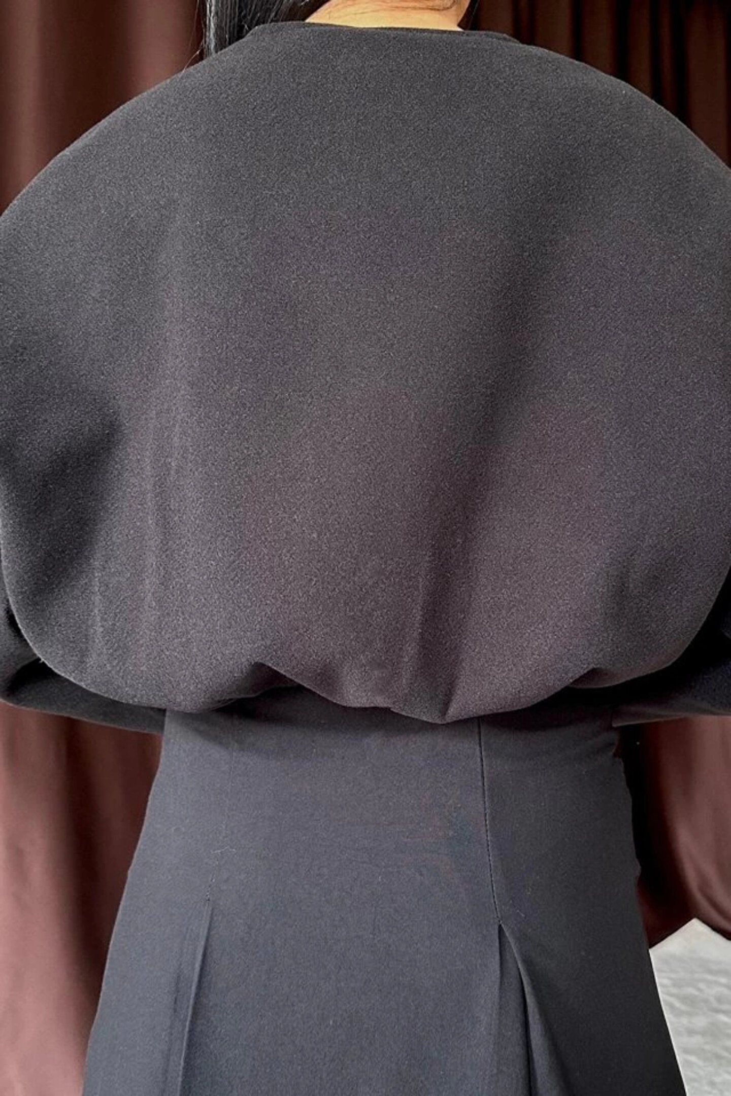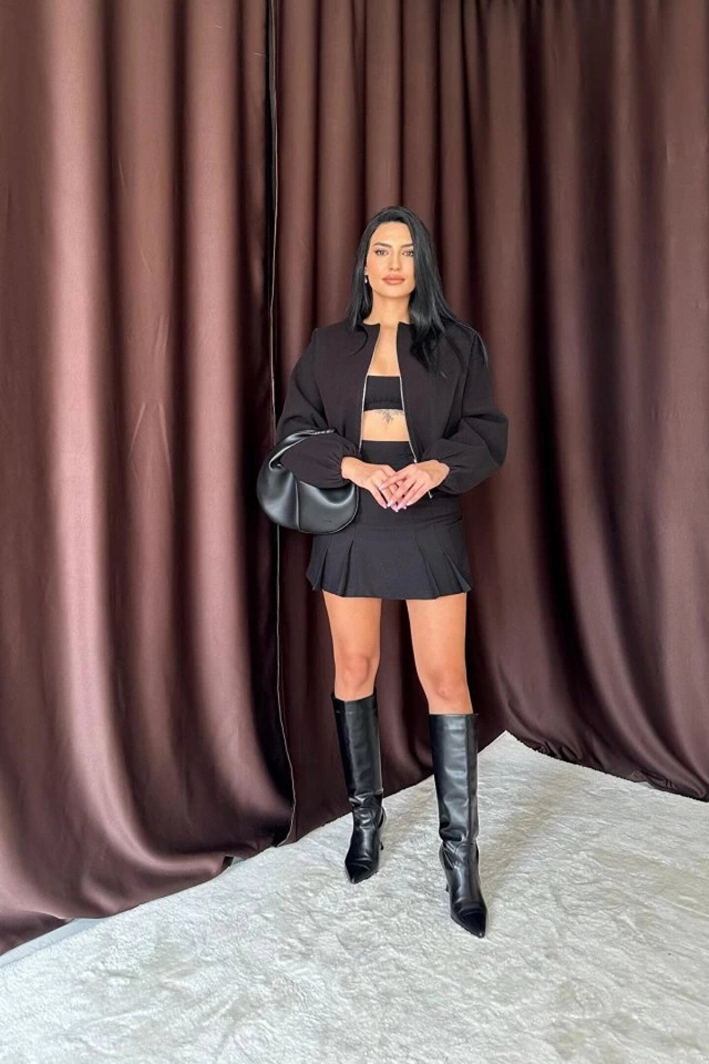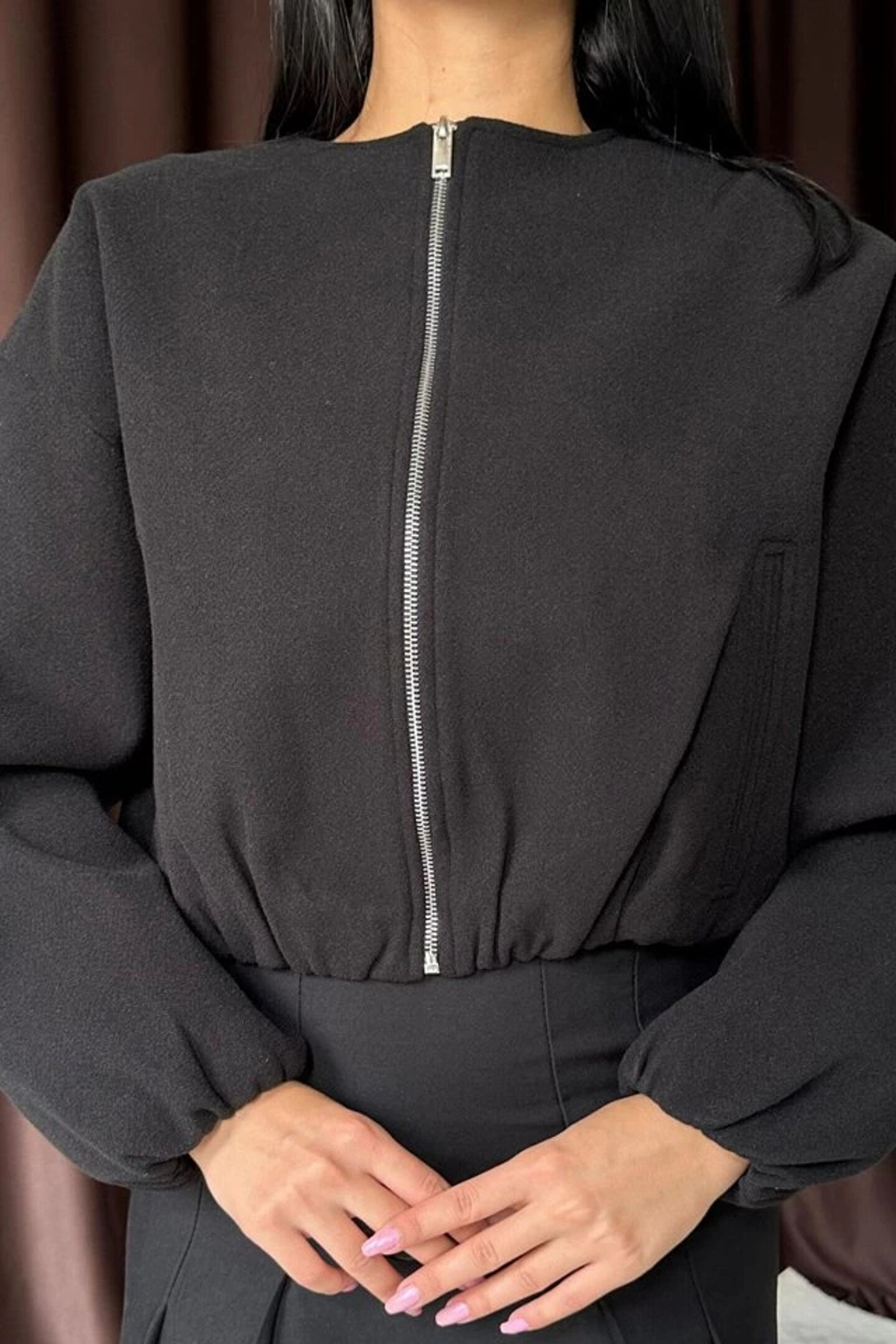 Melek Moda Siyah Kısa Önü Fermuarlı Bomber Ceket