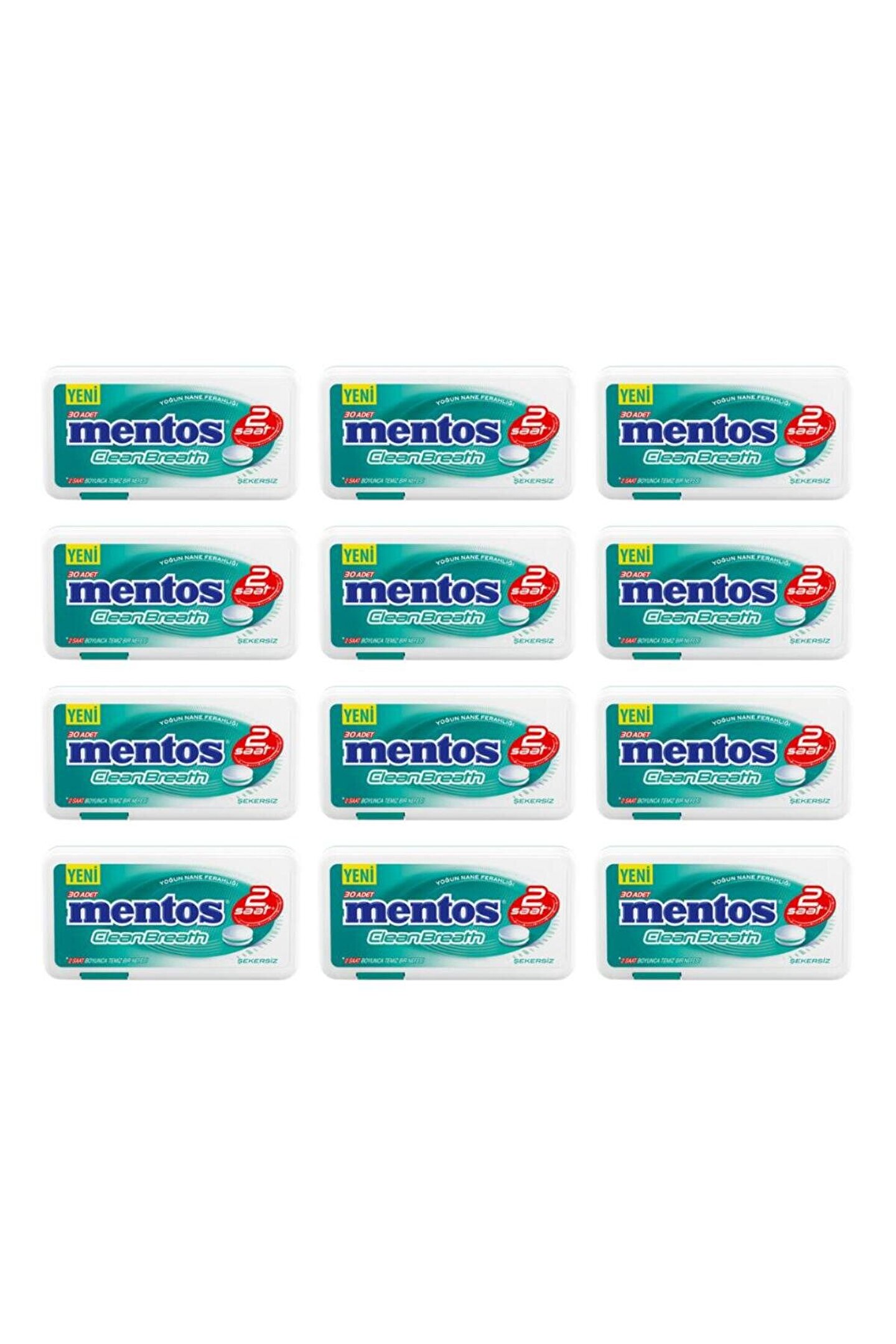MENTOS Clean Breath Yoğun Nane Aromalı Tatlandırıcılı Tablet Şekerleme 21 GR * 12 Adet