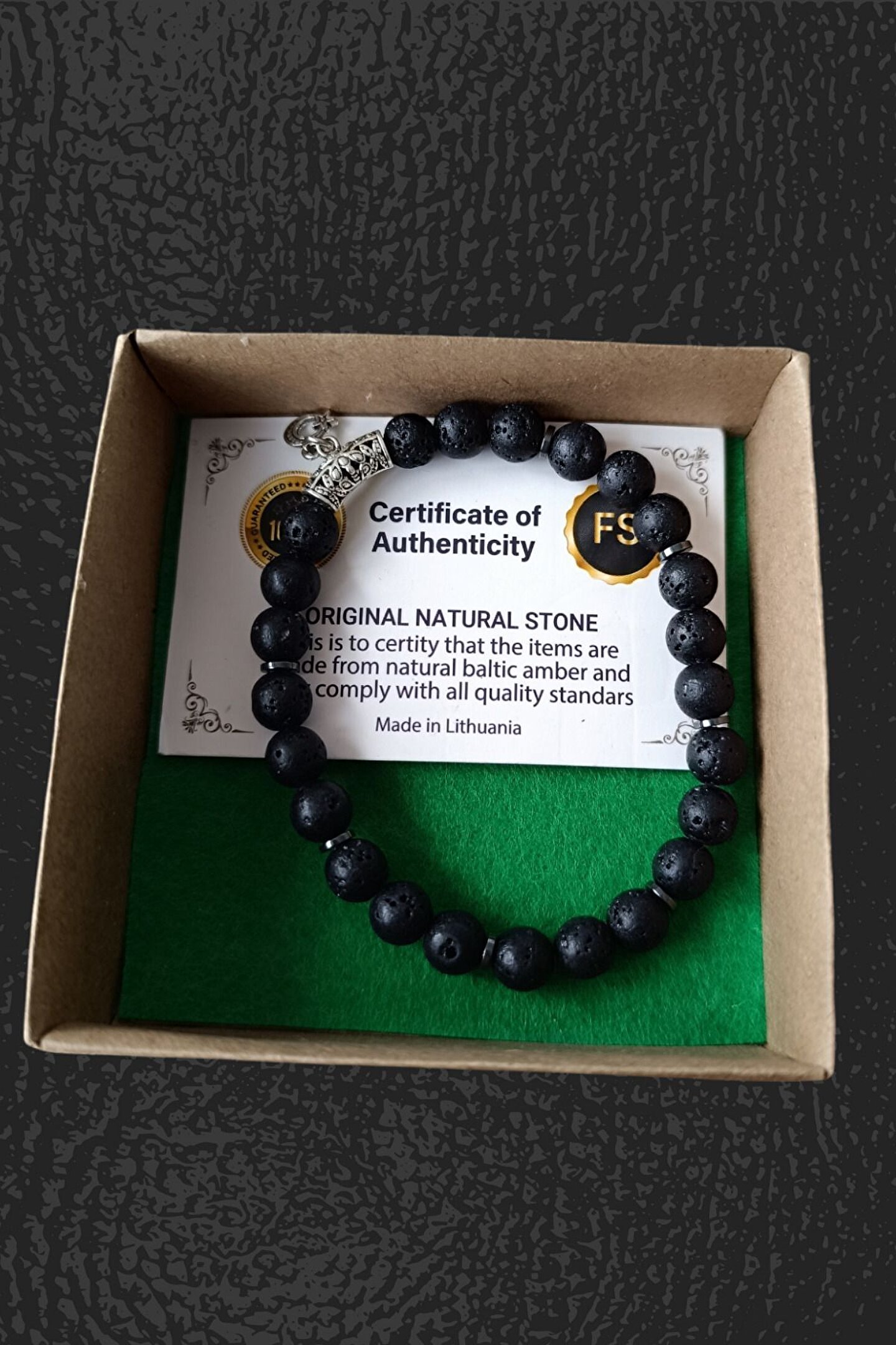MGA DOĞAL TAŞ Elektroliz Taşı Lav Taşı Siyah Lav Taşı Bileklik Türk Bayraklı metal Doğal Taş Bileklik