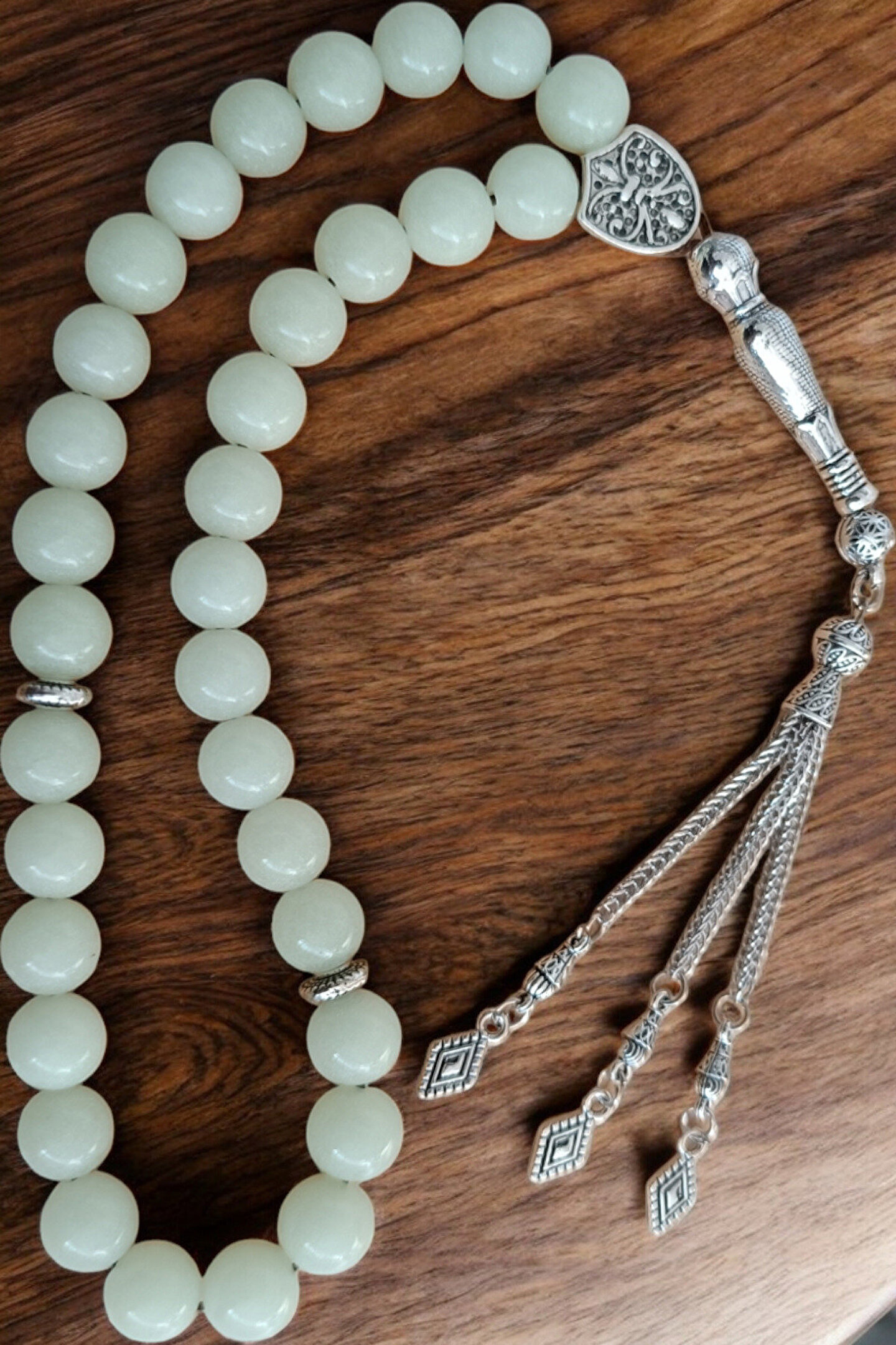- Orijinal doğal taş kullanılarak üretilmiş, Fosfor Taşı tesbih, şıklığı ve doğallığı bir arada sunar.; 10 mm Büyük boy Tesbih - 33'lük tesbih seti, her bir bileklikte 33 adet Fosfor Taşı ile tasarlanmıştır ve bu sayede hem estetik hem de manevi bir anlam taşır.; - Gerçek hakiki doğal taş kullanılarak üretilen bu tesbih, uzun ömürlü ve dayanıklı yapısıyla dikkat çeker.; - Sertifikalı doğal taş kalitesiyle öne çıkan bu ürün, Mga Doğaltaş Tasarım imzasını taşır ve kalite standartlarına uygun olarak üretilmiştir.; - Doğal taş görünümüyle dikkat çeken deseni sayesinde, her tür kıyafetle kolayca uyum sağlar ve zarif bir aksesuar olarak kullanılabilir.; - Tesbih Uzunluk : 30 cm imame uzunluk 3,5 cm Taş Boyutu: 1.00 cm 3 Püsküllü, Özel Sağlam Tesbih ipi ile dizilmiştir.; - Tüm Resimler Ve Tasarımlar MGA Doğal Taş'a aittir