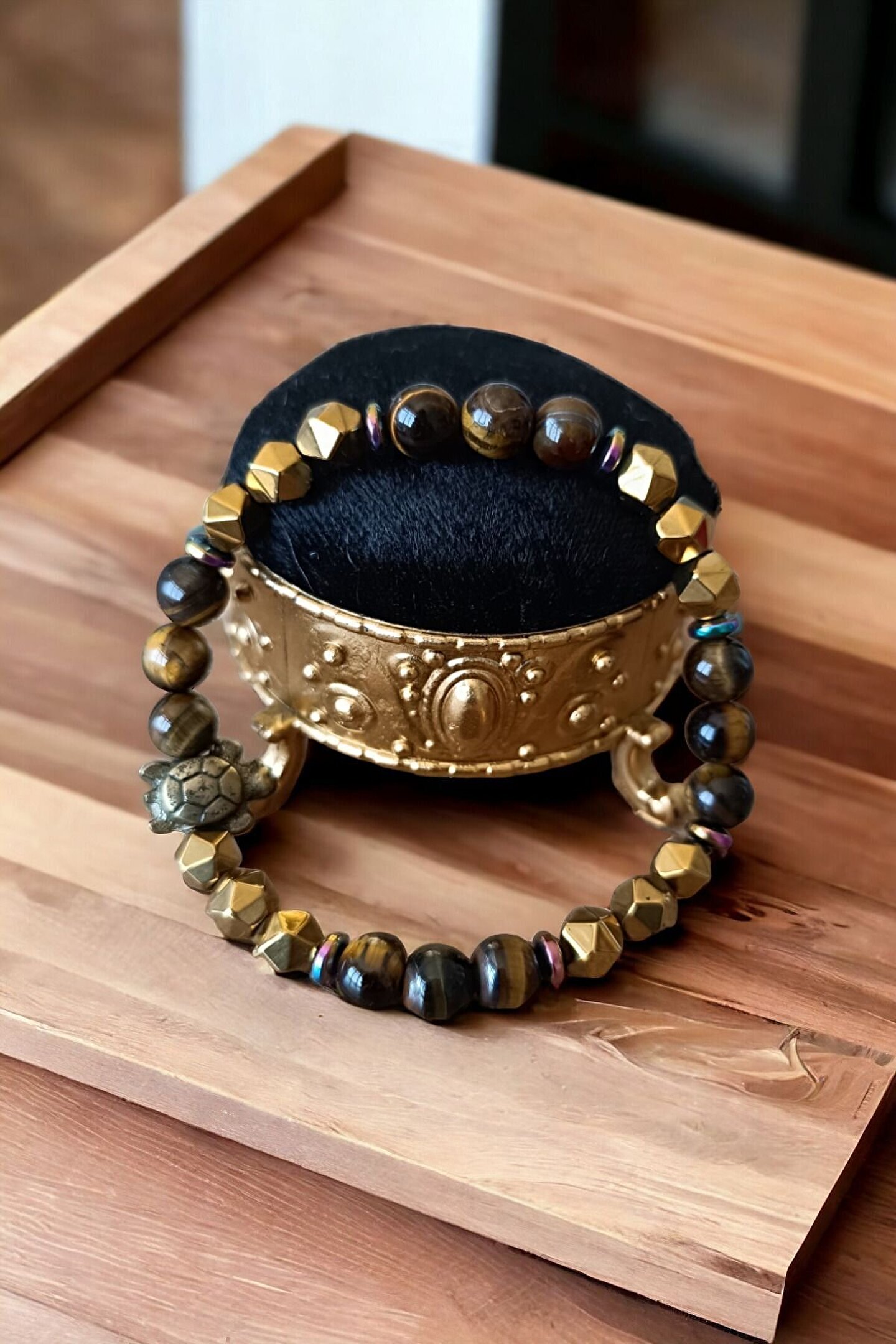 Tüm Taşlarımız Doğal Orijinal GerçekTaştır Piyasada Sentetik boncuk Taşlar ile lütfen Mukayese etmeyin ; Tüm ürünler orijinal Sertifika ilegönderilir Faturanız kesilir Sisteme işlenir ; Taşlar : Kaplan Gözü TaşıHematit Taşı ; Kesim: Normal kesim model + Disk kesim ; Taş boyutu : 8 mm - hematit disk 6 mm ; Taş sayısı : Bedenlere göre değişim olur ; Aparat: Metal Desenli ; Metal: Paslanmaz kaplama metallerdir ; Görüntü: Resim Ortalama 20-21 cm göreçekilmiştir ; Bilek yapınıza göre ayarlanacakmodelde taş + artı yada - eksi olabilir ; Bileklik ölçüsü: 16-17 cm - 18-19 cm -20-21 cm - 22-23 cm ; Sargı: 1 mm misina ipi Kalite: Doğaltaşlar ; Ürün içeriği: bileklik + sertifika +yedek misina ; Ambalajı: Seçenekler Mevcuttur ; Paket içeriği : 1 adet bileklik + 20-25cm uzunluğunda1 adet yedek misine ; İp: Esnek uzayıp kısalabilen misina herbileğe uyum sağlar bileği sıkmaz ; Ayrıca yedek misina gönderilmektedirbileklik bilek yapınıza göre yeniden tasarlayabilirsiniz ;