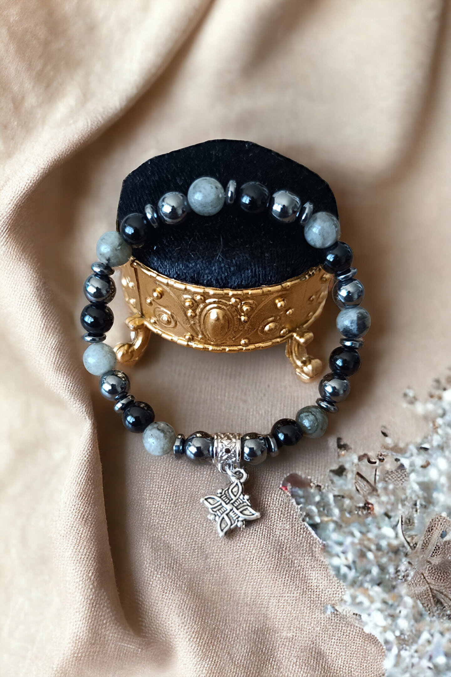 Tüm Taşlarımız Doğal Orijinal GerçekTaştır Piyasada Sentetik boncuk Taşlar ile lütfen Mukayese etmeyin ; Tüm ürünler orijinal Sertifika ilegönderilir Faturanız kesilir Sisteme işlenir ; Taşlar : Labradorit Taşı Oniks Taşı Hematit Taşı ; Kesim: Normal kesim model + Disk kesim ; Taş boyutu : 8 mm - hematit disk 6 mm ; Taş sayısı : Bedenlere göre değişim olur ; Aparat: Metal Desenli ; Metal: Paslanmaz kaplama metallerdir ; Görüntü: Resim Ortalama 20-21 cm göreçekilmiştir ; Bilek yapınıza göre ayarlanacakmodelde taş + artı yada - eksi olabilir ; Bileklik ölçüsü: 16-17 cm - 18-19 cm -20-21 cm - 22-23 cm ; Sargı: 1 mm misina ipi Kalite: Doğaltaşlar ; Ürün içeriği: bileklik + sertifika +yedek misina ; Ambalajı: Seçenekler Mevcuttur ; Paket içeriği : 1 adet bileklik + 20-25cm uzunluğunda1 adet yedek misine ; İp: Esnek uzayıp kısalabilen misina herbileğe uyum sağlar bileği sıkmaz ; Ayrıca yedek misina gönderilmektedirbileklik bilek yapınıza göre yeniden tasarlayabilirsiniz ;