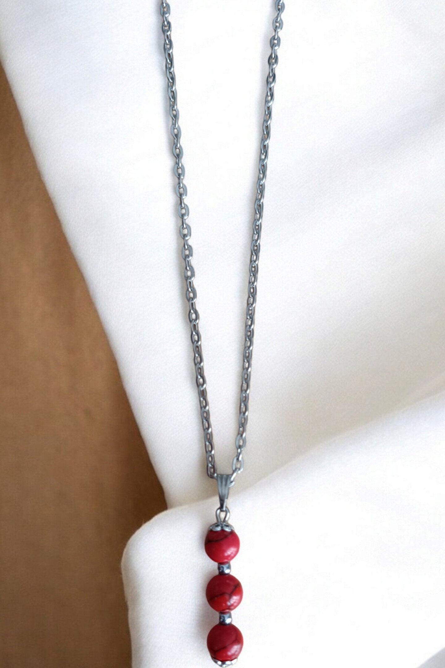 - Kırmızı Firuze taşı, her kolyede 3 adet 8 mm çapında bulunan gerçek hakiki doğal taşlardan oluşan bir kolye, zarif tasarımıyla dikkat çeker.; - Alt ve üst kısımlarında çiçek metal süslemeleri bulunan bu kolye, şıklığınızı tamamlayacak detaylara sahiptir.; - 2 cm uzunluğundaki bu zarif kolye, 56 cm uzunluğundaki kalın zinciri ile hem günlük kullanım hem de özel günler için idealdir.; - Türkiye'de üretilen bu kolye, geleneksel el işçiliği ile modern tasarımın mükemmel uyumunu sunar.; - Yetişkin kadın ve kızlar için uygun olan bu kolye, her yaş grubuna hitap eden zarif bir aksesuar seçeneğidir.; - Doğal taş materyali sayesinde her kolye benzersiz ve otantik bir görünüm kazanır; her bir parçanın kendine özgü deseniyle dikkat çeker.