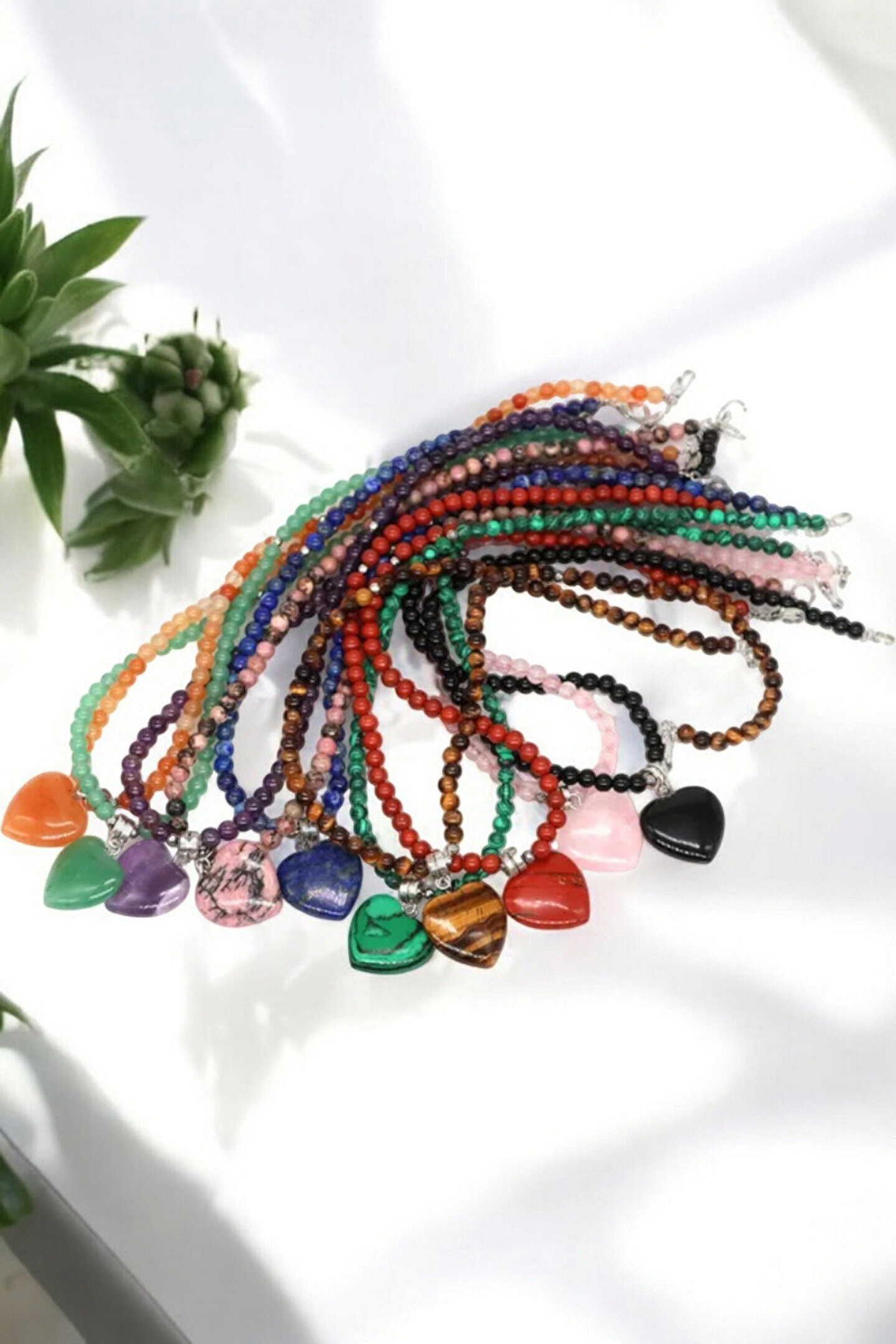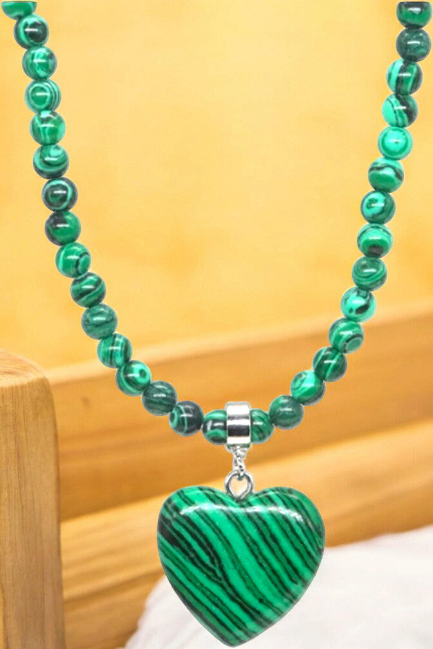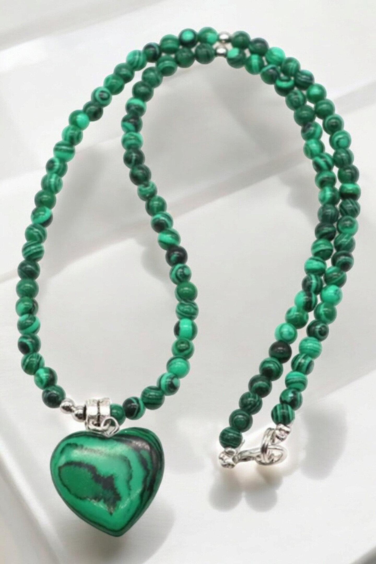 - Malahit taşı, kaplan gözü taşı ve doğal taş gibi doğal taşların zarif birleşimiyle tasarlanmış, göz alıcı bir aksesuar; - 4 mm kalınlığında zarif ve dayanıklı çelik tel zincir, uzun süreli kullanım için idealdir; - Kalpli tasarımı ile hem şıklığı hem de anlamı bir arada sunar; sevgiyi ve bağlılığı simgeler; - Doğal taşların benzersiz dokusu ve renkleriyle her kıyafetle uyum sağlayacak estetik bir görünüm;