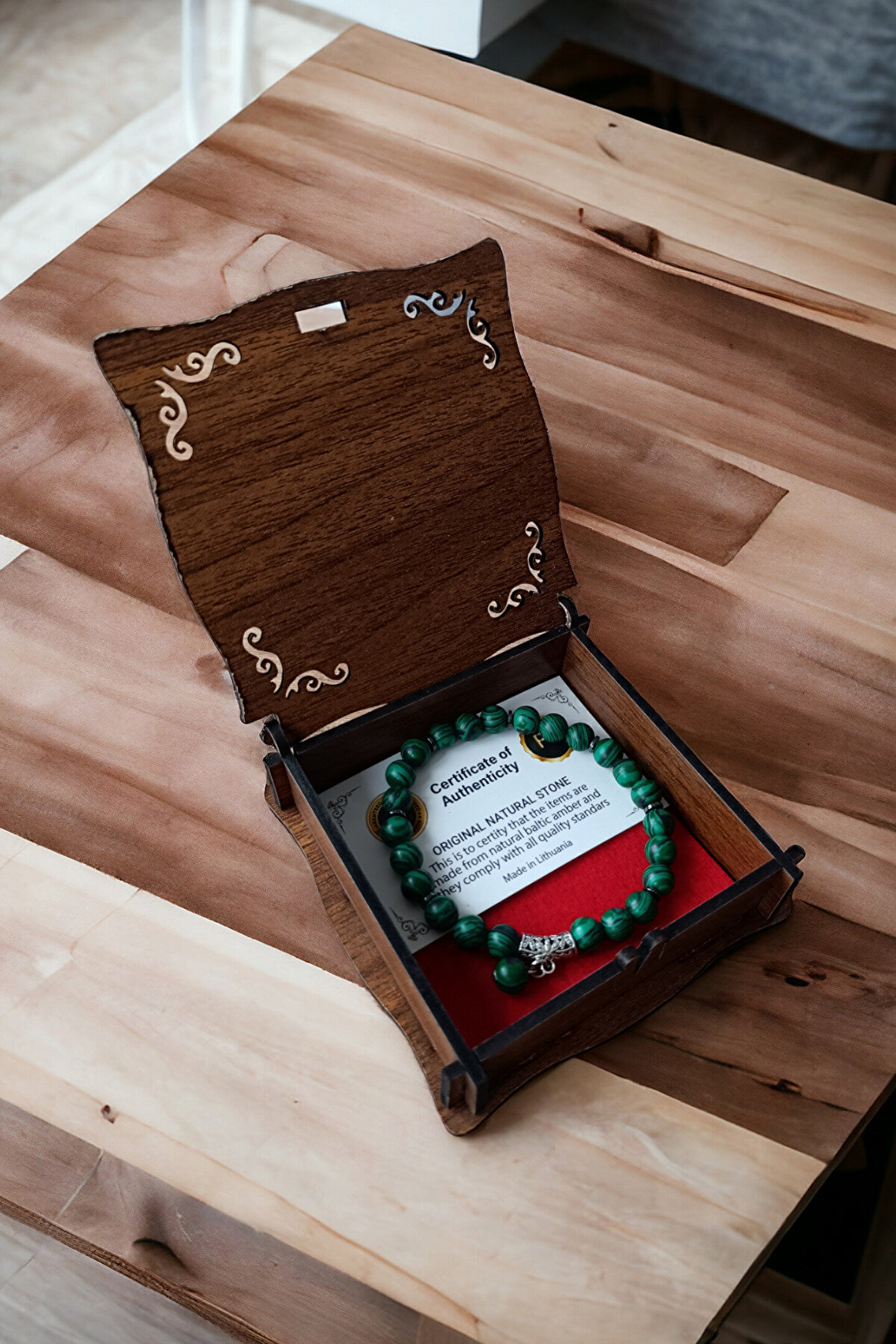 Tüm Taşlarımız Doğal Orijinal GerçekTaştır Piyasada Sentetik boncuk Taşlar ile lütfen Mukayese etmeyin ; Tüm ürünler orijinal Sertifika ilegönderilir Faturanız kesilir Sisteme işlenir ; Taşlar : Malahit Taşı + Hematit Taşı ; Kesim: Normal kesim model + Disk kesim ; Taş boyutu : 8 mm - hematit disk 4 mm ; Taş sayısı : Bedenlere göre değişim olur ; Aparat: Orijinal Doğal Malahit Taşı ; Metal: Paslanmaz kaplama metallerdir ; Görüntü: Resim Ortalama 20-21 cm göreçekilmiştir bilek yapınıza göre ; ayarlanacak modelde taş +artı yada - eksi olabilir Bileklik ölçüsü: 16-17 cm - 18-19 cm -20-21 cm - 22-23 cm ; Sargı: 1 mm misina ipi Kalite: Doğaltaşlar ; Ürün içeriği: bileklik + sertifika +yedek misina ; Ambalajı: Seçenekler Mevcuttur ; Paket içeriği : 1 adet bileklik + 20-25cm uzunluğunda1 adet yedek misine ; İp: Esnek uzayıp kısalabilen misina herbileğe uyum sağlar bileği sıkmaz ; Ayrıca yedek misina gönderilmektedirbileklik bilek yapınıza göre yeniden tasarlayabilirsiniz ;