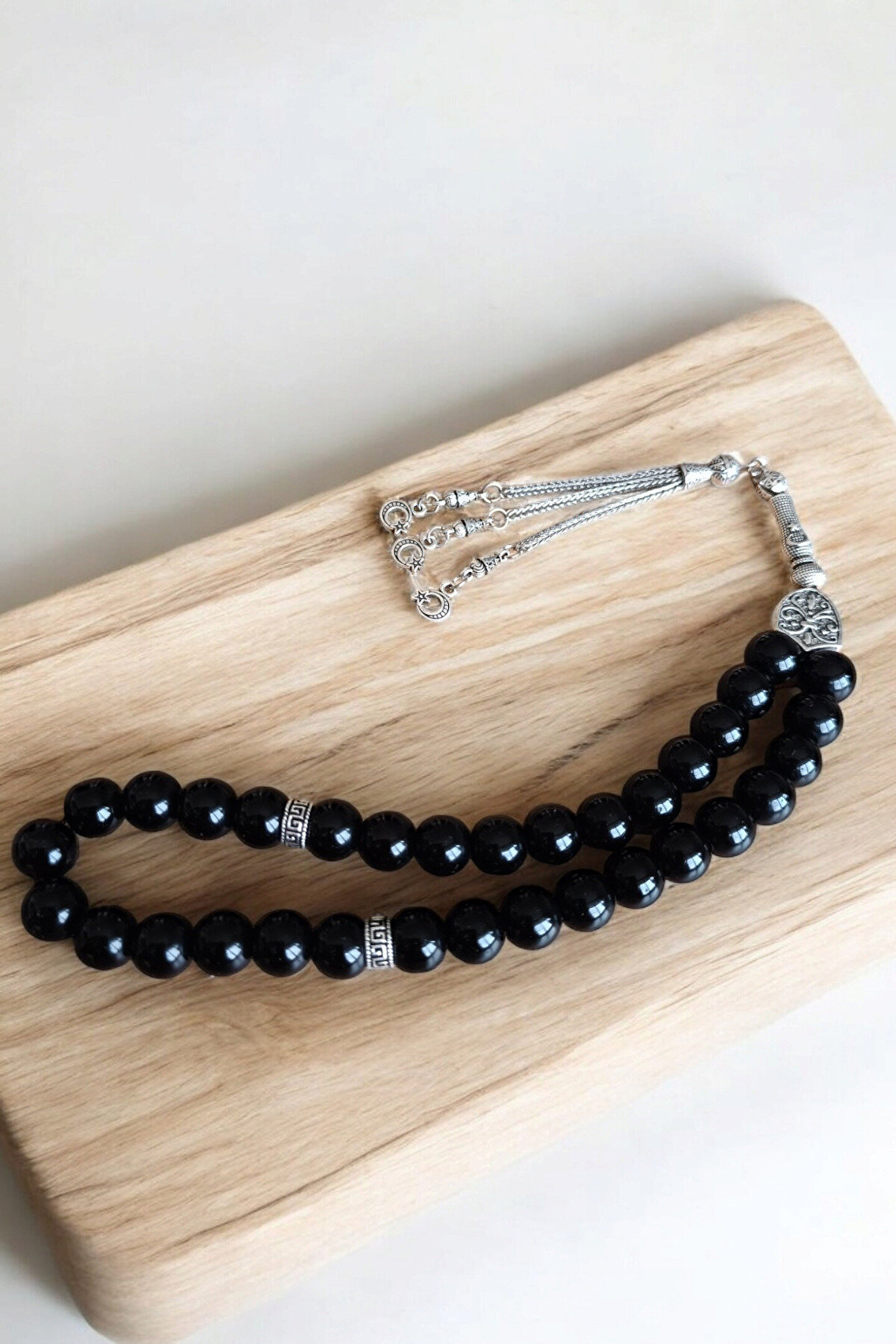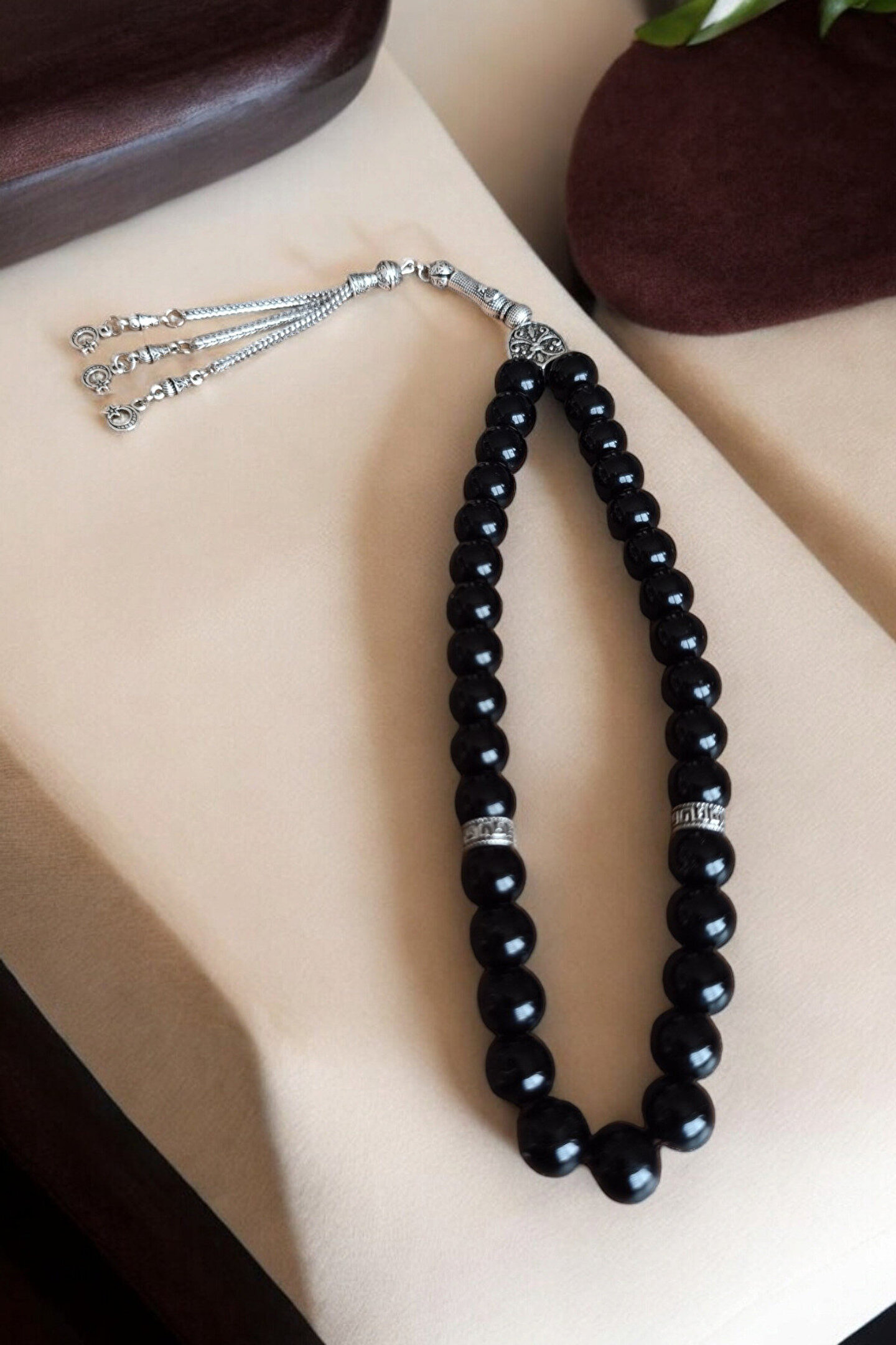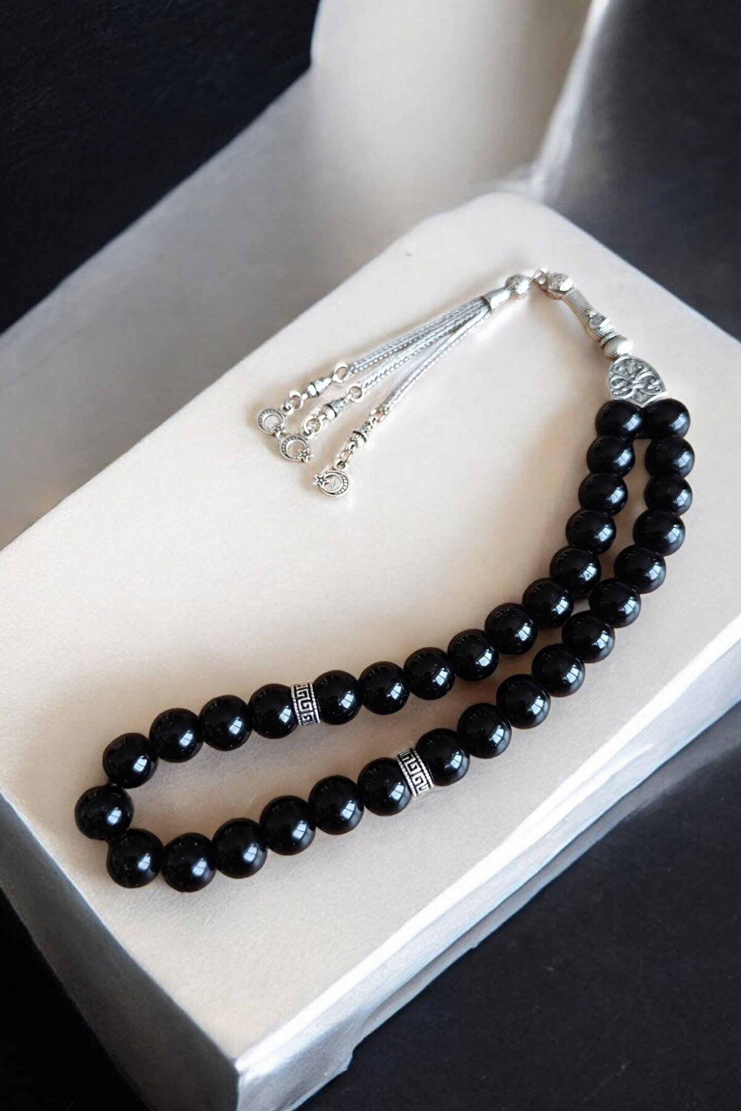 Oniks taşı tesbih, doğal taş materyalden üretilmiş olup, her bir tesbih tanesi 10 mm boyutundadır; Parlak oniks taşı ile tasarlanmış bu tesbih, şıklığı ve zarafeti bir arada sunar; Düz deseni sayesinde sade ve klasik bir görünüm sergiler, her tür kıyafetle uyum sağlar; Sertifikalı özel MDF kutusu ile birlikte gelir; bu sayede tesbihinizi güvenle saklayabilir ve taşıma kolaylığı yaşayabilirsiniz; Erkekler için ideal bir hediye seçeneği olan bu tesbih, 33'lük özel tasarımıyla manevi değeri artırır;
