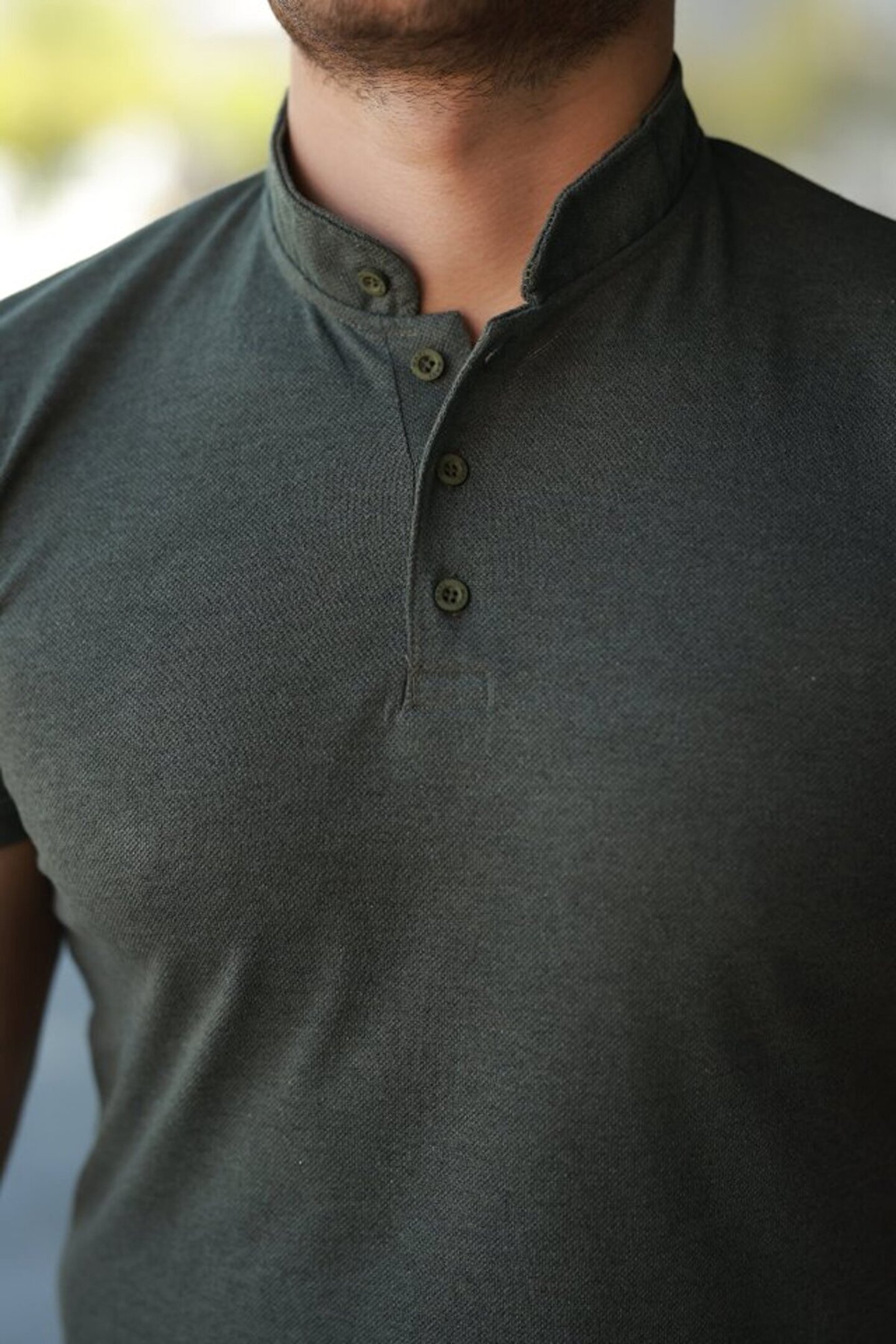 MHT STORE EQURİ Erkek Hakim Yaka Dokuma Pamuklu Kumaş Kısa Kollu Tişört