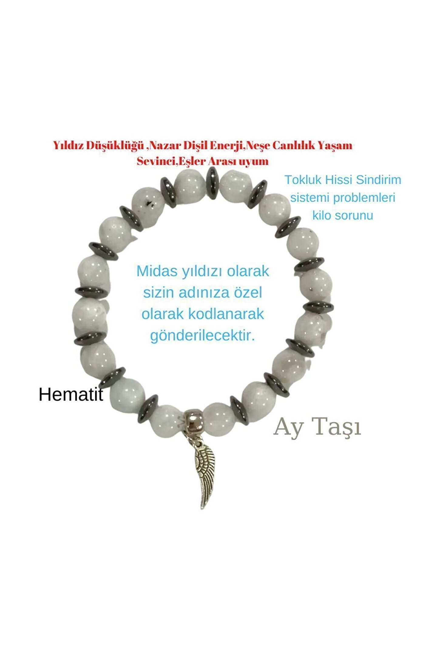 TOPRAK KADAR ZENGİN,AY KADAR PARLAK ,GÜNEŞ KADAR SICAK,HAVA KADAR YUMUŞAK ,YILDIZ KADAR GÖZ ALICI AY TAŞI SİZLERLE RUHUNUZ BEDENİNİZ ZİHNİNİZ İLE BÜTÜNLEŞME ZAMANI ?MODEL İÇİN AY TAŞI,AŞK,UMUT,RÜYA, DÜŞ ÇAKRASI , TEPE TAÇ ALIN ÜÇÜNCÜ GÖZ ÇAKRA Çiftler arasında aşk ve sevgi bağı ,Kişinin duygusal gerilimden kurtulmasına duygularını kabullenmesi ne ,Kadınlar için şifa kaynağı üreme sistemi sağlığı hormon DENGESİ Rahim yumurtalık sağlığı ?Hamile kalabilmek doğum kolaylığı Doğum sancısının hafiflemesi ?Aylık periyotlarının regl döngüsünün düzeni ?Menopoz ?Endişe telaş aşırı duygusal tepkilerin rahatlaması ?İnsanlarla aranızdaki Şefkat sempati karşılıklı ilişki sevgilerin ihtirası ?Sezgi ve iletişim kuvveti ?Bacak ve sırt ağrılarısı ? AŞIRI TERLEME ?Doku cilt saç bozulmaları ?Hücre yenileme ?Uykusuzluk çekenlere rahat bir uyku ?Kötü rüyaları engelleme uyurgezerliğe karşı ?Beyin fonksiyonlarının olumlu yöndeki etkisi ile zihin açıklığı ?Anne sütü artırıcı ?KONTROLÜ ELE Alma (yemeden, uykuya, iş hayatından, evin düzenine kadar günlük yaşantıyı derleyip toplama) ?RUH VE BEDENDEKİ AYDINLANMA ?KADIN HASTALIKLARI ?MANTIKSIZ DÜŞÜNCELERDEN ARINMA ?YENİ BAŞLANGIÇLAR ?SEZGİ GÜCÜ ?DİŞİL ENERJİ CAZİBE ?DUYGUSAL DENGE ?STRES ÖFKE KABALIĞIN YATIŞMASI(nazik ve kibar olma) ?TOKSİNLERİN ATILMASI ?ÖDEM GİDERİCİ ?UYKU DENGESİ ?DÜŞÜK YILDIZ NAZAR ?TOKLUK HİSSİ KİLO VERMEYE YARDIMCI ?Şok ve travmanın atlatılması ?Sindirim sistemi mide sağlığı gıdaların özümsenmesi ?Karaciğer ve pankreas sağlığı ?Olayları duru saf ve net olarak sezme algılama farkındalık Satıcıya soru sor kısmından bize ad,soyad,anne adı ve doğum tarihinizi yazarsanız bioenerji uzmanımız(uluslar arası geçerli, sertifikalı) sizin adınıza özel olarak kodlama yapacak ve ürün size ondan sonra gönderilecektir;