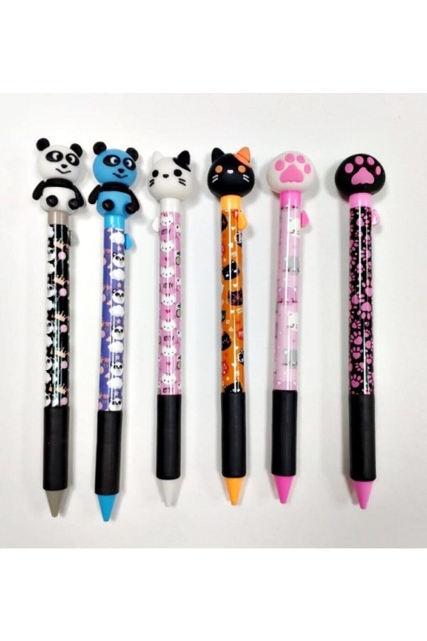 Mikro Sevimli Kedi Ve Panda Figürlü 0.7 Uçlu Kalem 6lı Set
