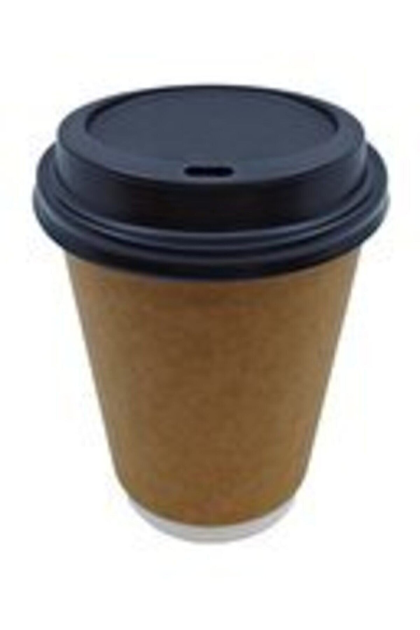 Karton Kağıt Bardak 14oz 350ml Kraft Çift Katlı Siyah Kapaklı 25 Adet