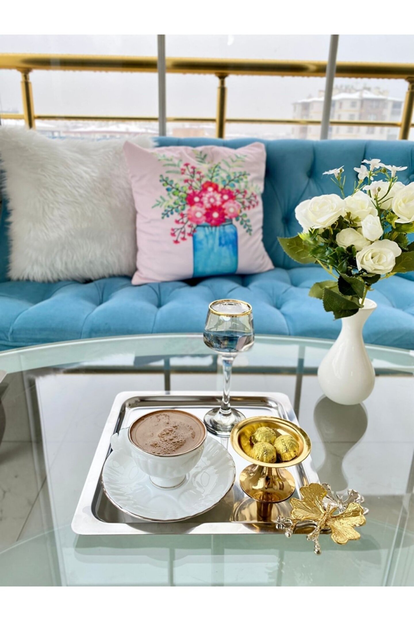 El Yapımı Porselen Aynalı Tepsi