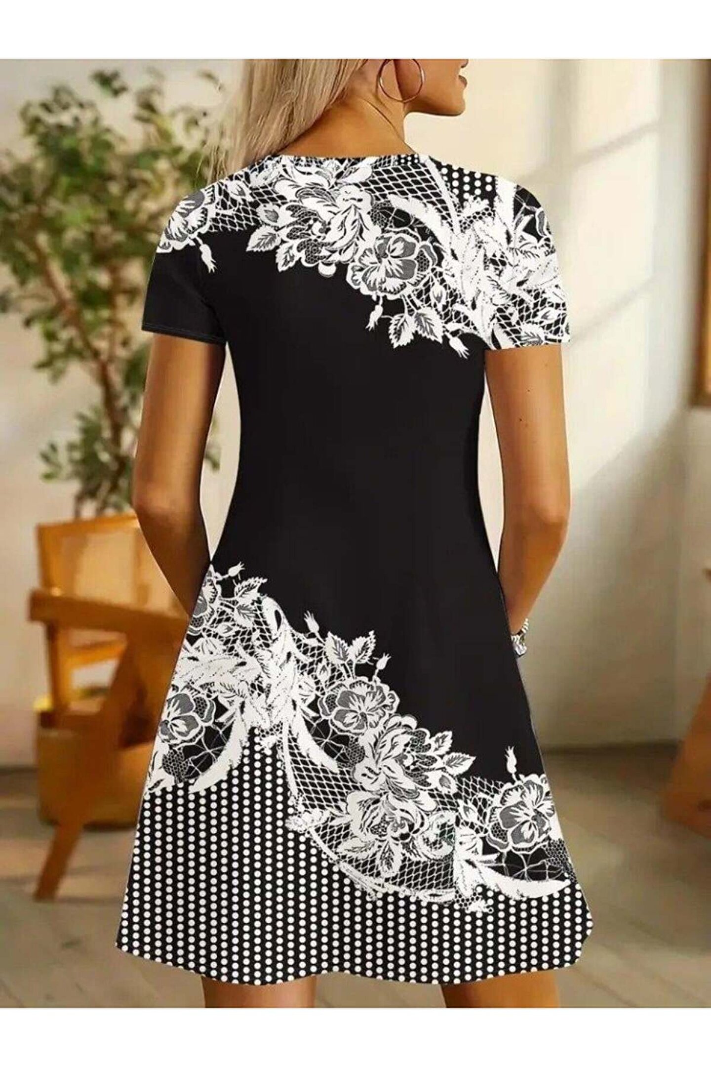 Kadın Kısa Kollu V Yakalı çiçek Baskılı Süprem Elbise