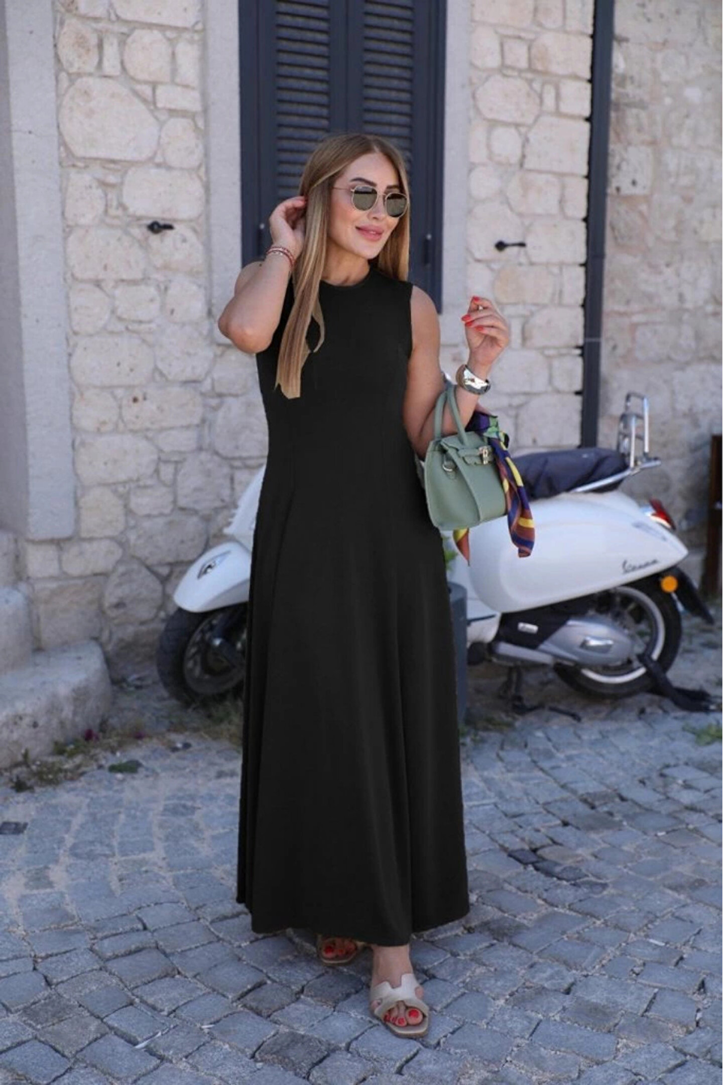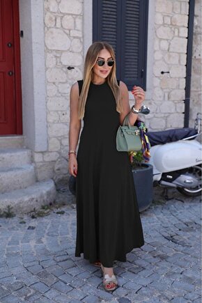 Kadın Sıfır Kollu Bisiklet Yaka Viskon Elbise
