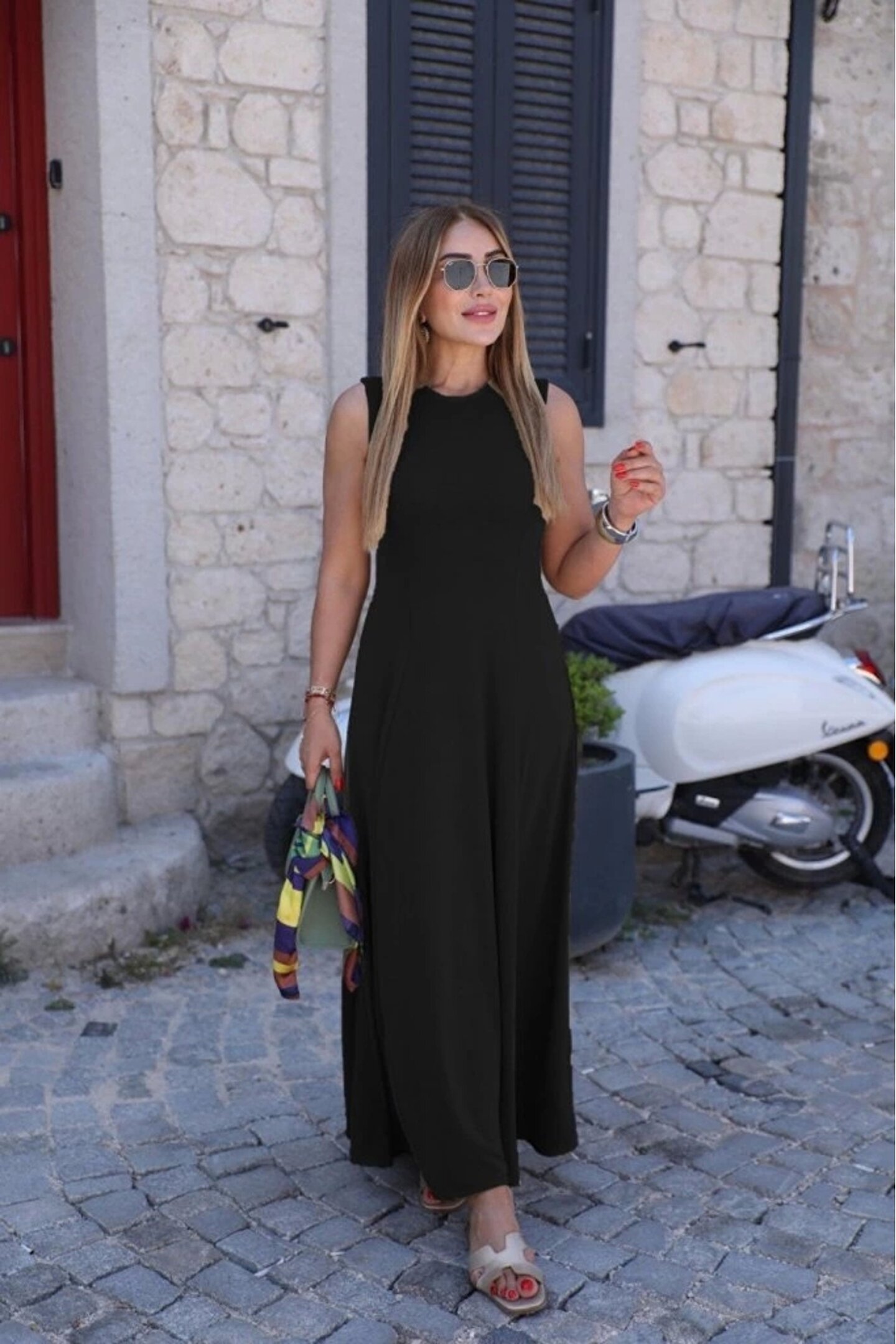 MissRunin Kadın Sıfır Kollu Bisiklet Yaka Viskon Elbise