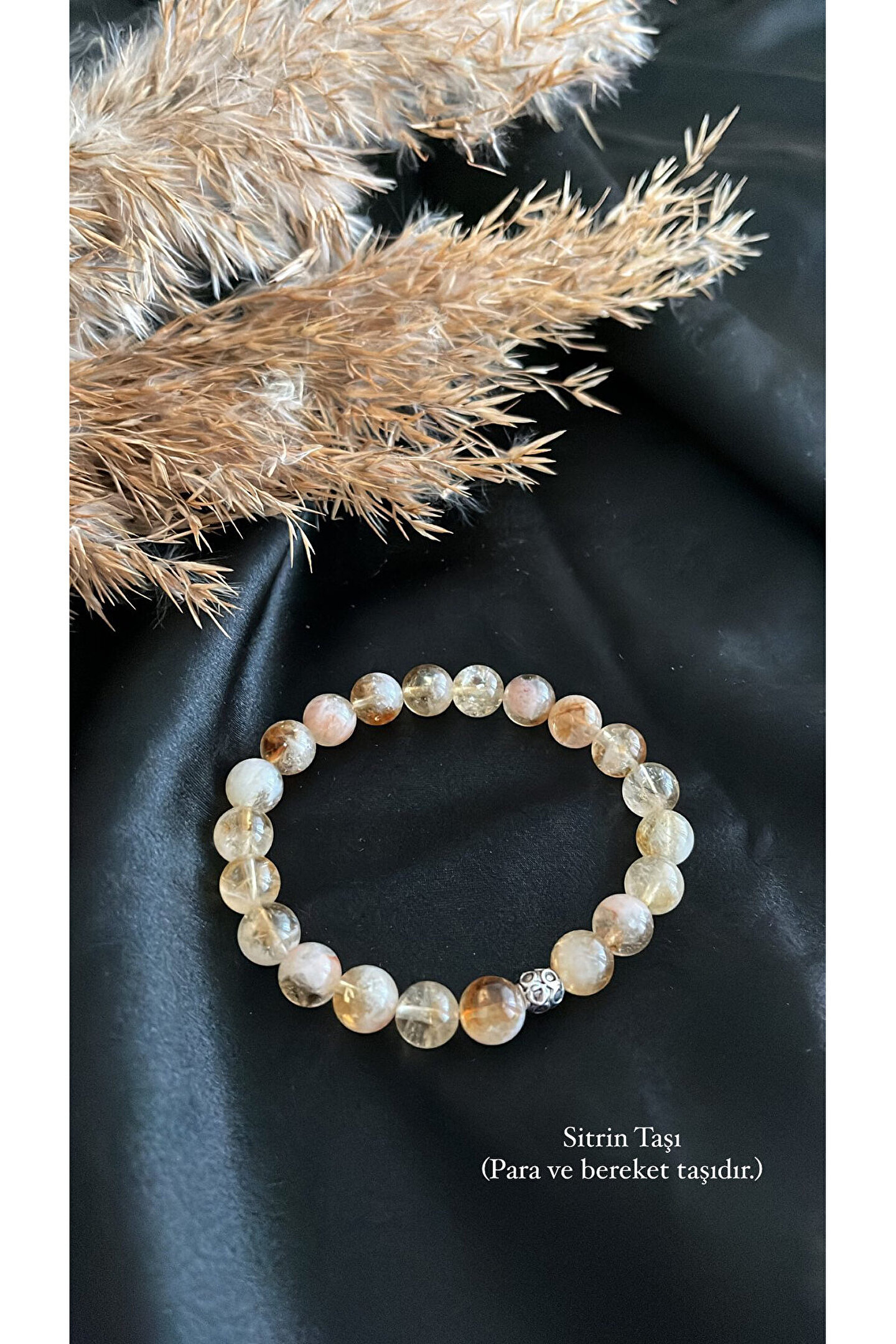 Bileklik 8 mm Sitrin doğal taştan üretilmiştir. ; Taşlarımız gerçek doğal taştır. ; Doğal taşlar tabiatı itibariyle kendine özgü biçimdedir ve aynı taş cinslerinde dahi ufak tefek renk tonu ve biçim farklılıkları görülebilir. ; Bu taşın doğadaki doğal oluşumuyla ilgilidir. ; Belli aralıklarla topraklama yöntemiyle taşınızın enerjisini temizleyip taşlarınızı arındırabilirsiniz. ; “Para taşı” olarak da bilinen sitrin taşı faydaları, zenginlik, refah ve bolluk çekme özelliğiyle bilinir. ; Özgüveni artırdığı gibi zekayı güçlendirir, motivasyonu artırır ve korkuları serbest bırakır.;